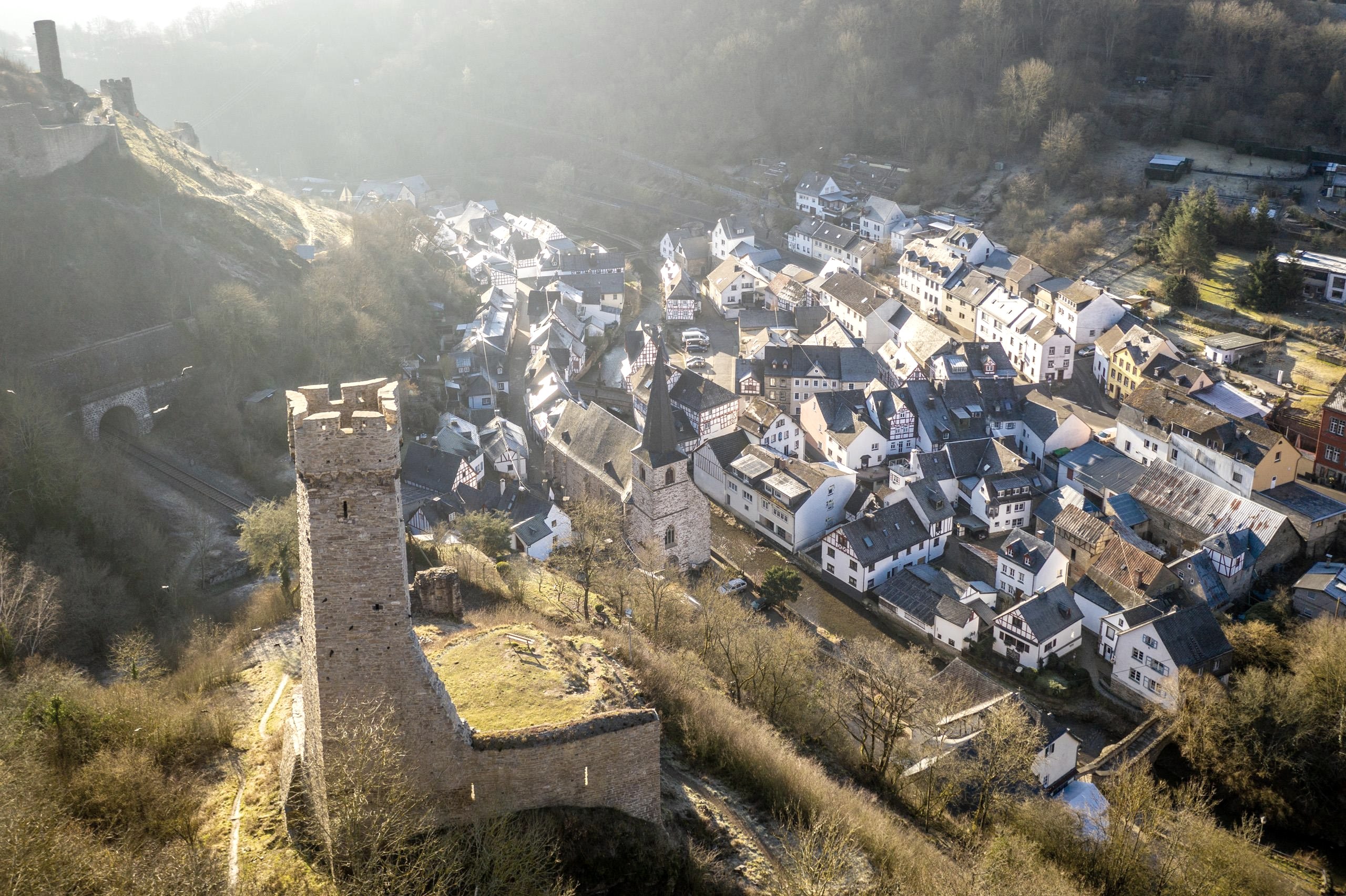 Die Löwenburg oberhalb des Fachwerkdorfs Monreal ist eine sogenannte Spornburg und wurde erstmals im Jahre 1229 urkundlich erwähnt.