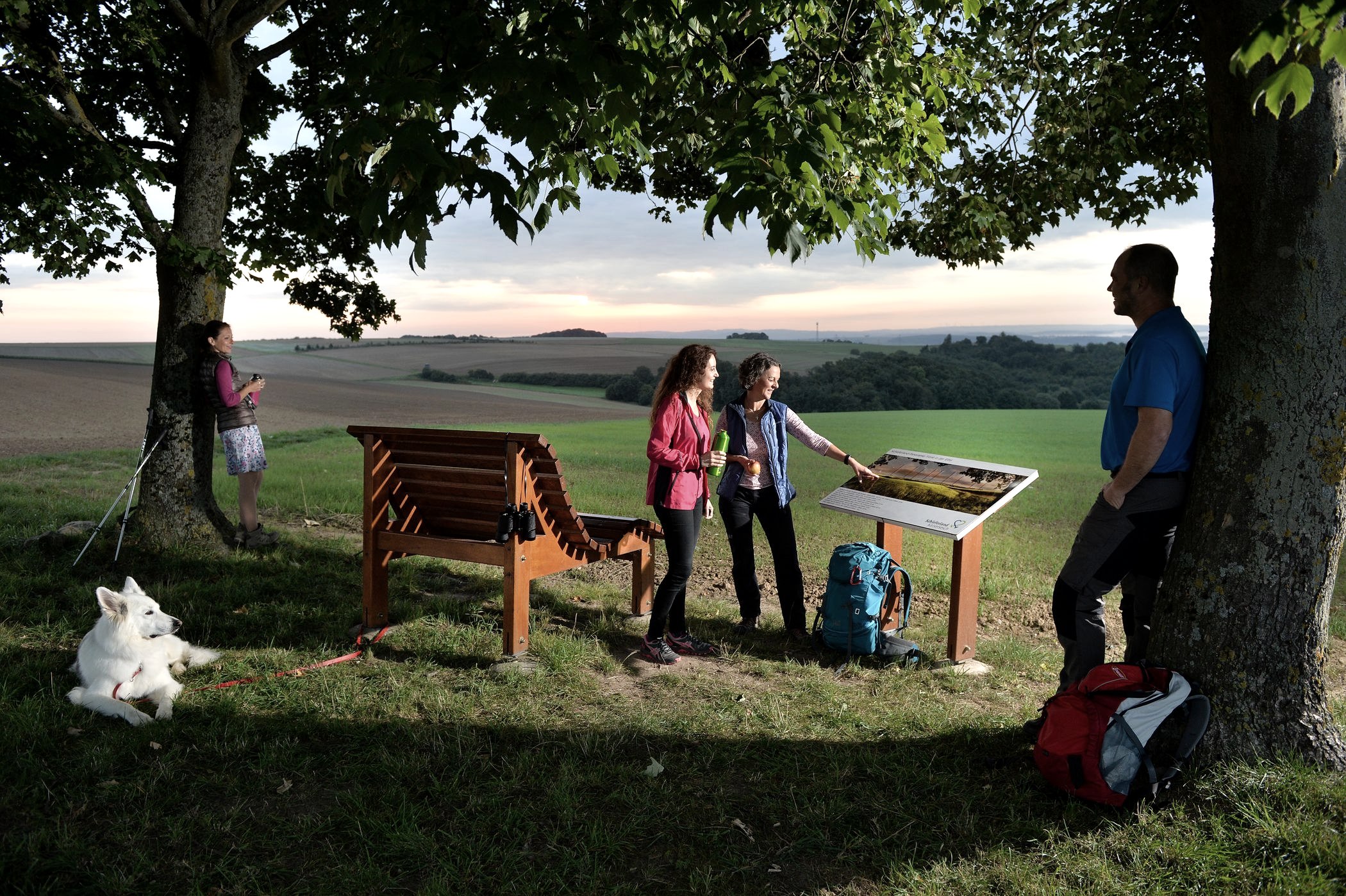 The hiking trail connects several places in Schieferland Kaisersesch and offers spectacular views and natural paths. Another highlight of the hiking route is the Kulm - a vantage point surrounded by wide fields (409 m). On a clear day, the view extends as far as the Hunsrück. The view of the Maifeld is also impressive, especially when the rape is in bloom. In Gamlen, the Brodhübel offers an ideal opportunity to take a break with a small picnic. Another attraction on the "Route Pyrmont" is the XXL bench in Möntenich. Feel big for a brief moment and experience a wonderful panoramic view of the Maifeld. Take a seat and let your legs dangle.