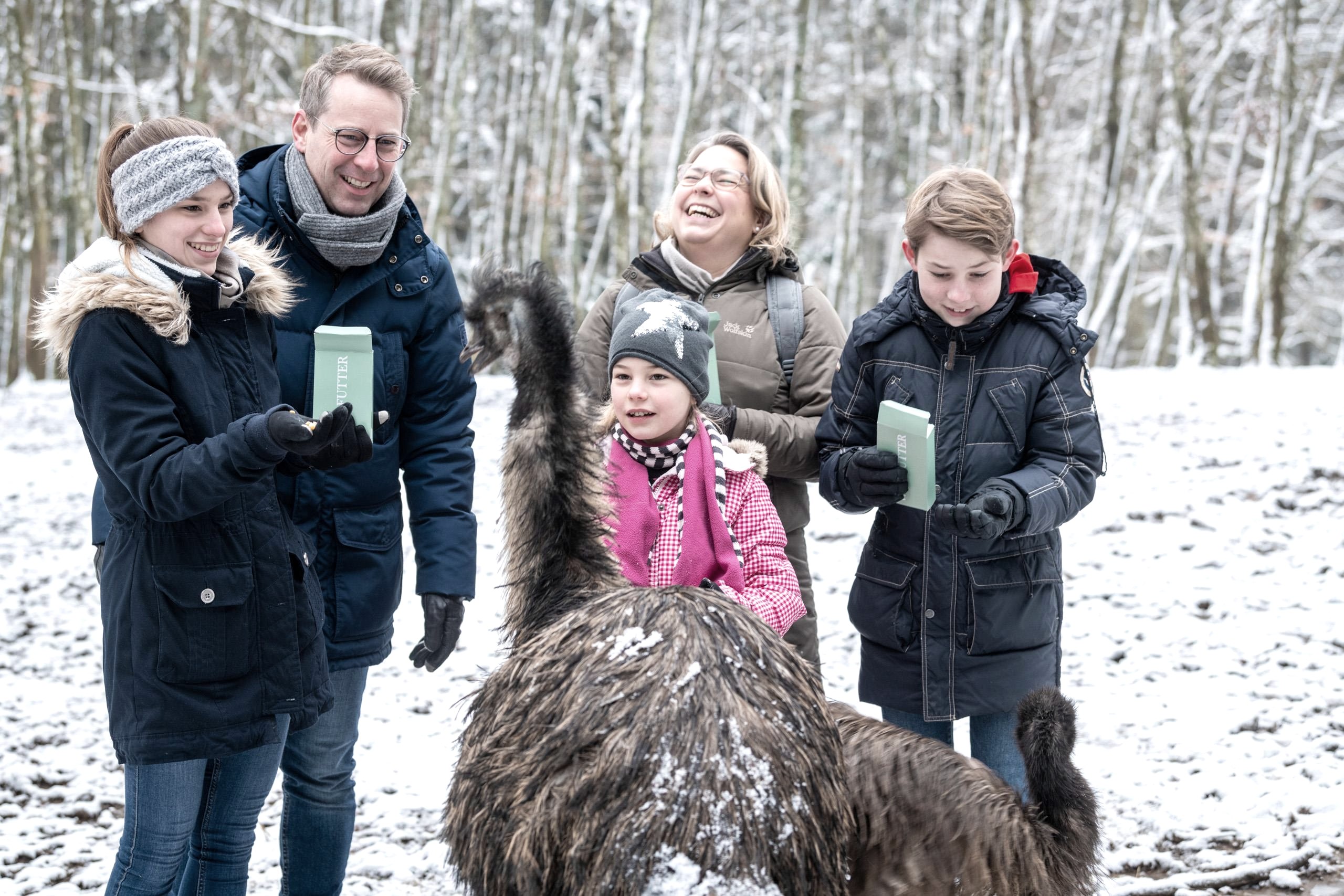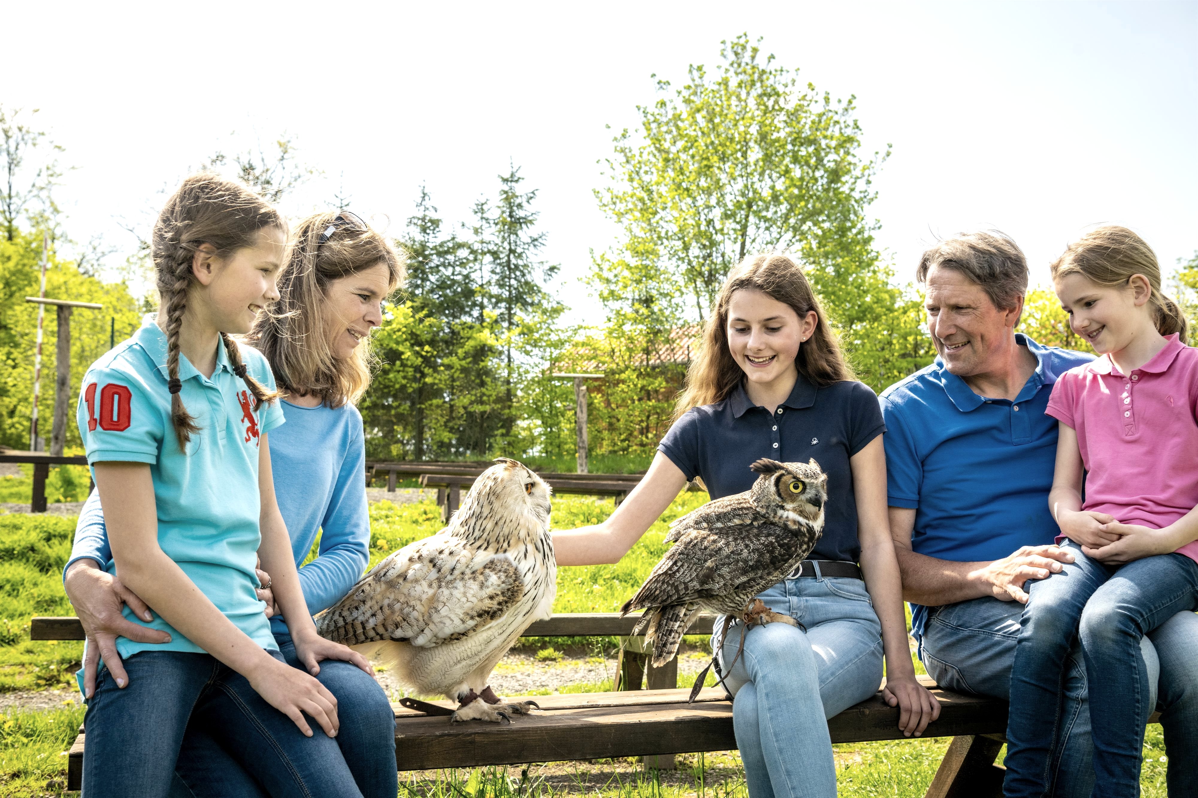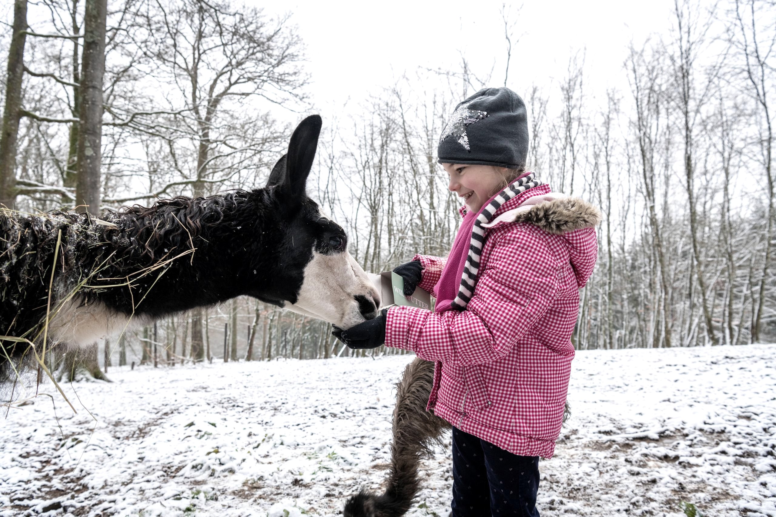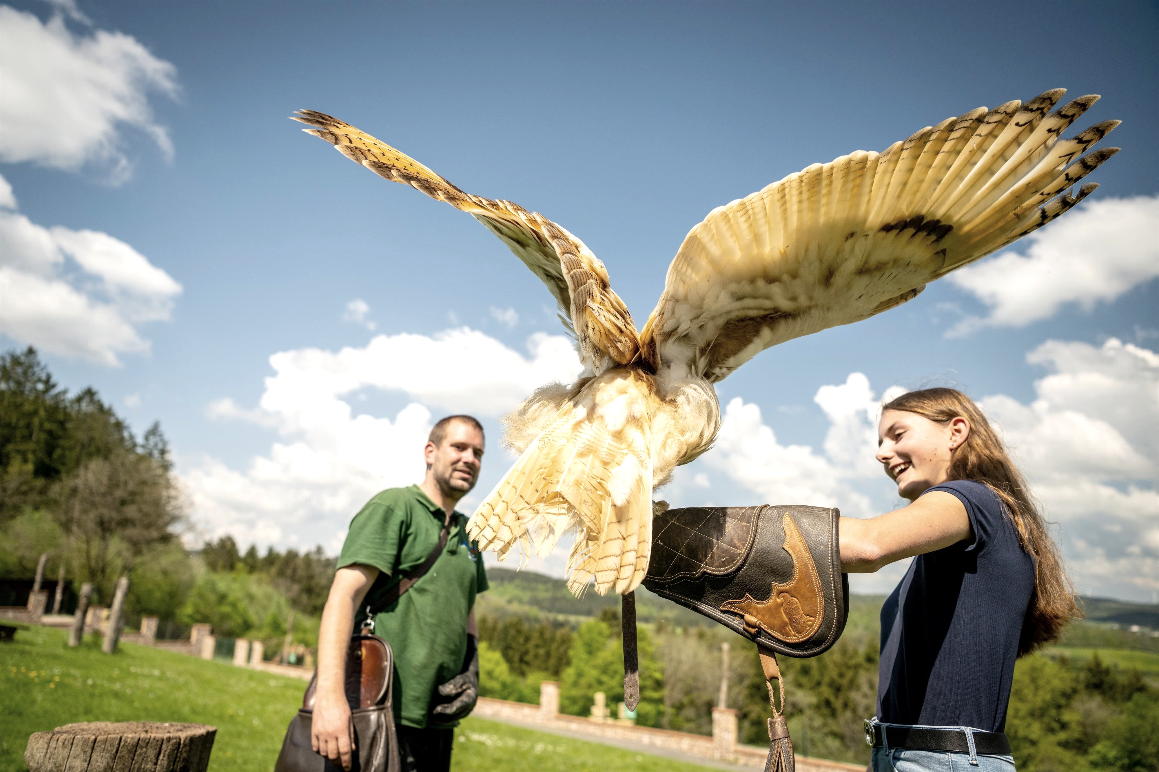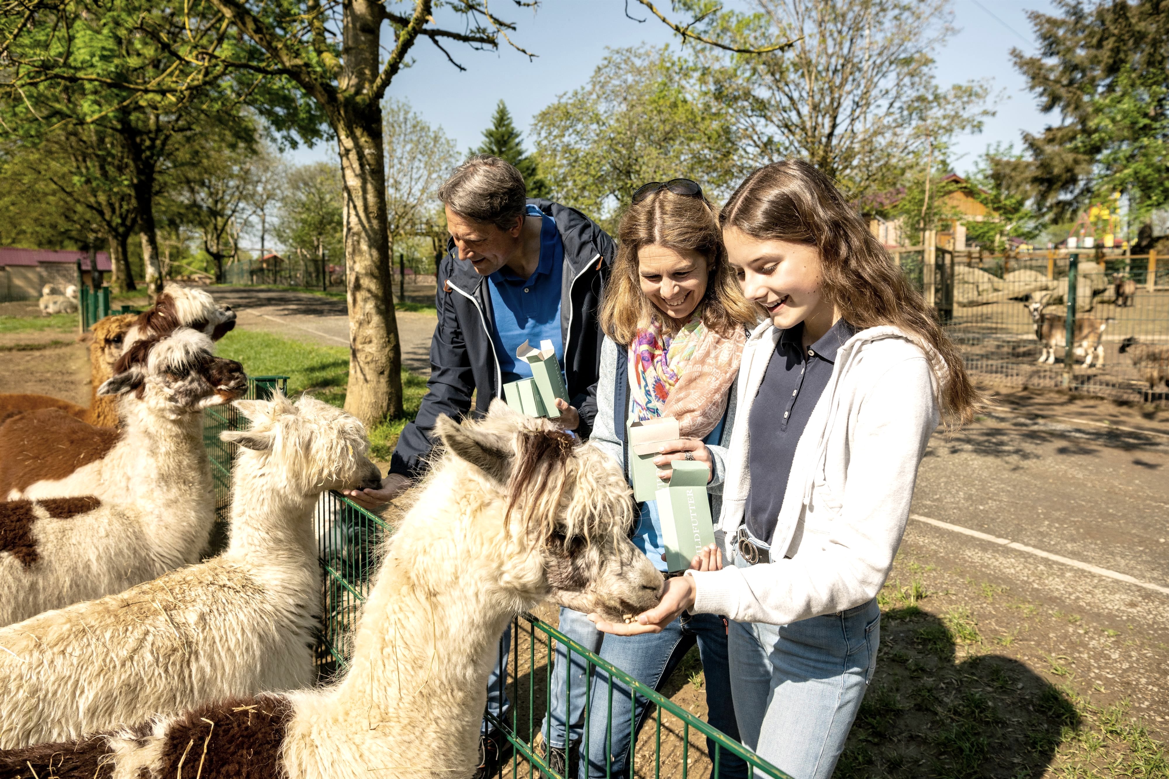 The following animals can be seen here: mouflons, wild yak, lamas and rheas, red deer, fallow deer, a bird of prey enclosure, an “ape ravine” with barbary macaques.