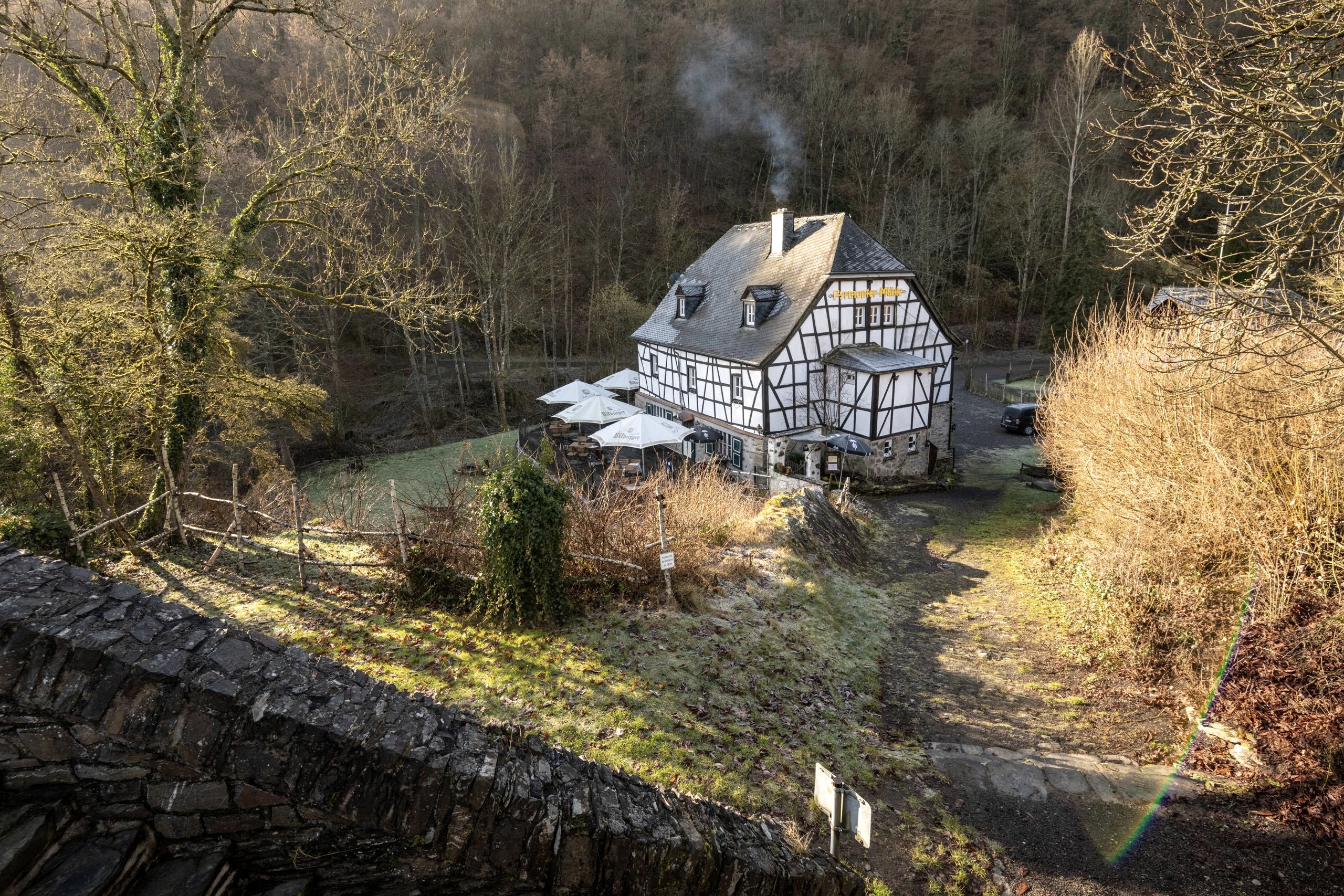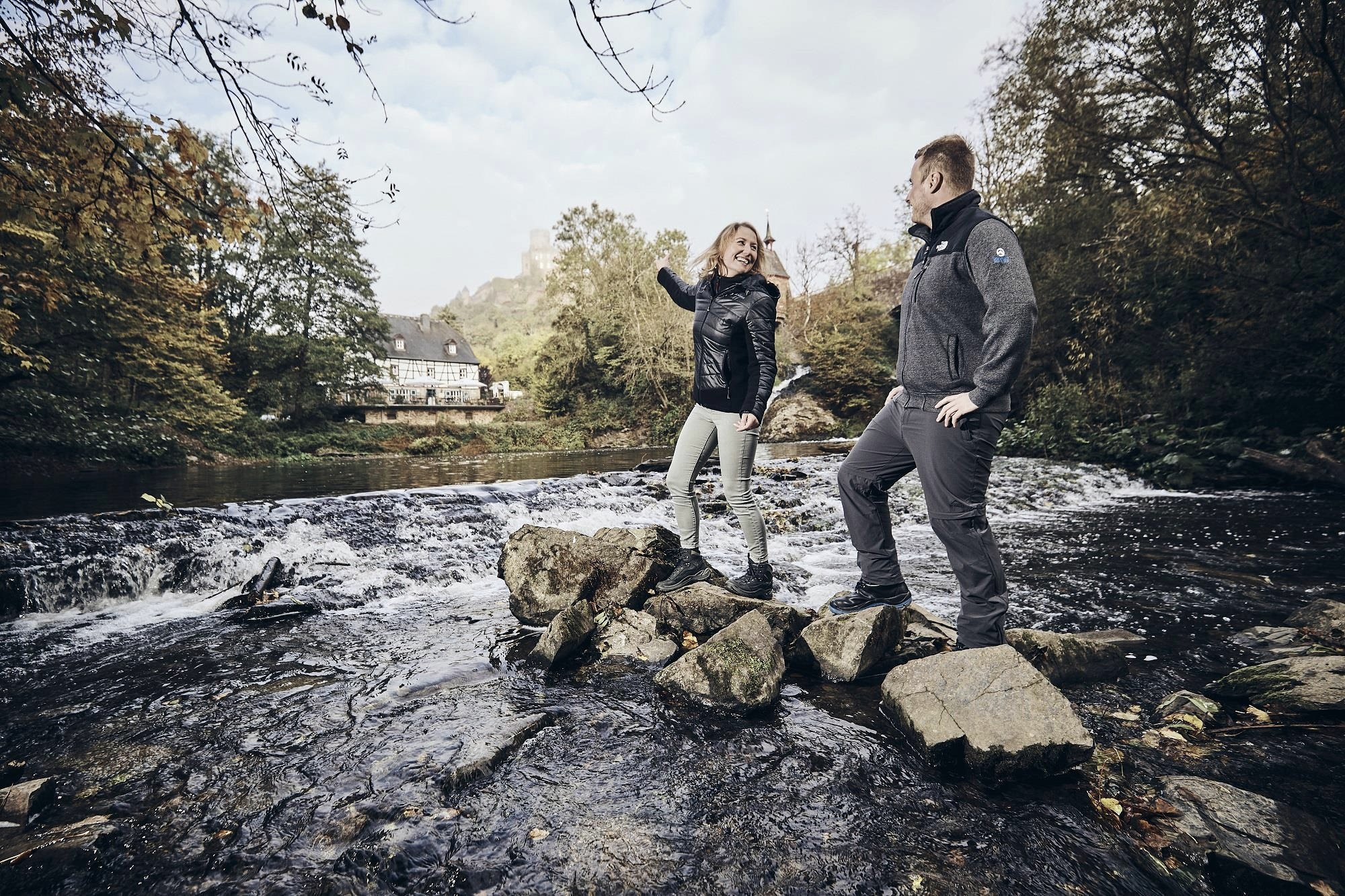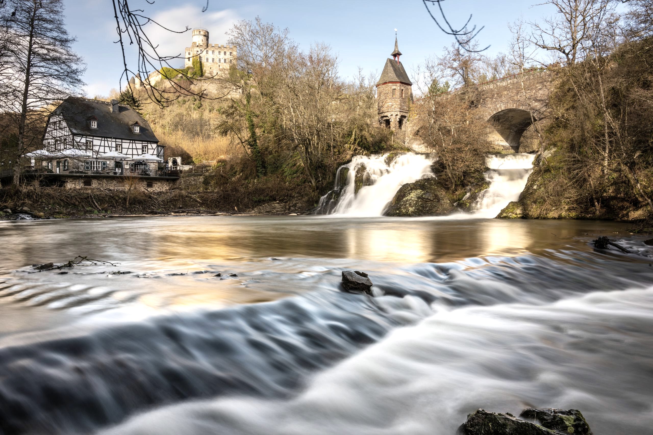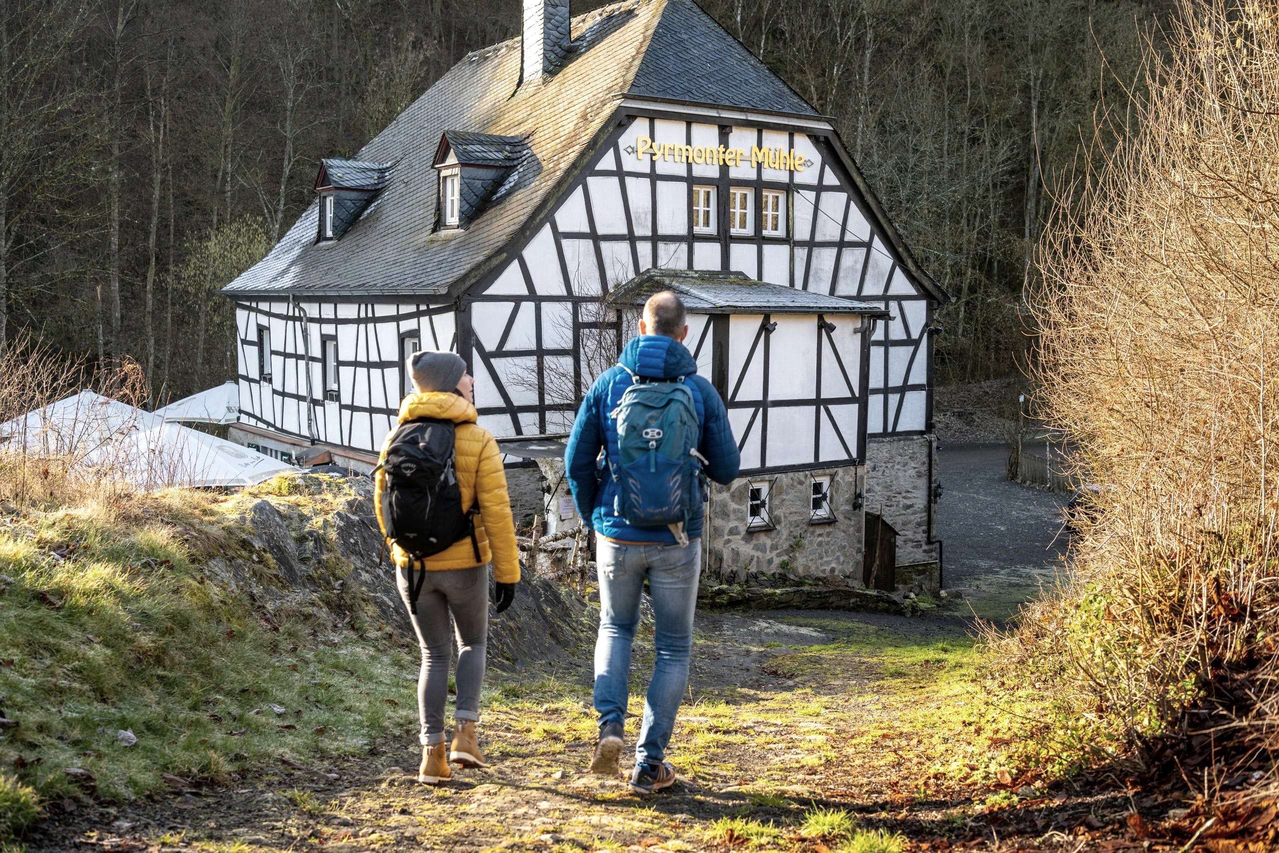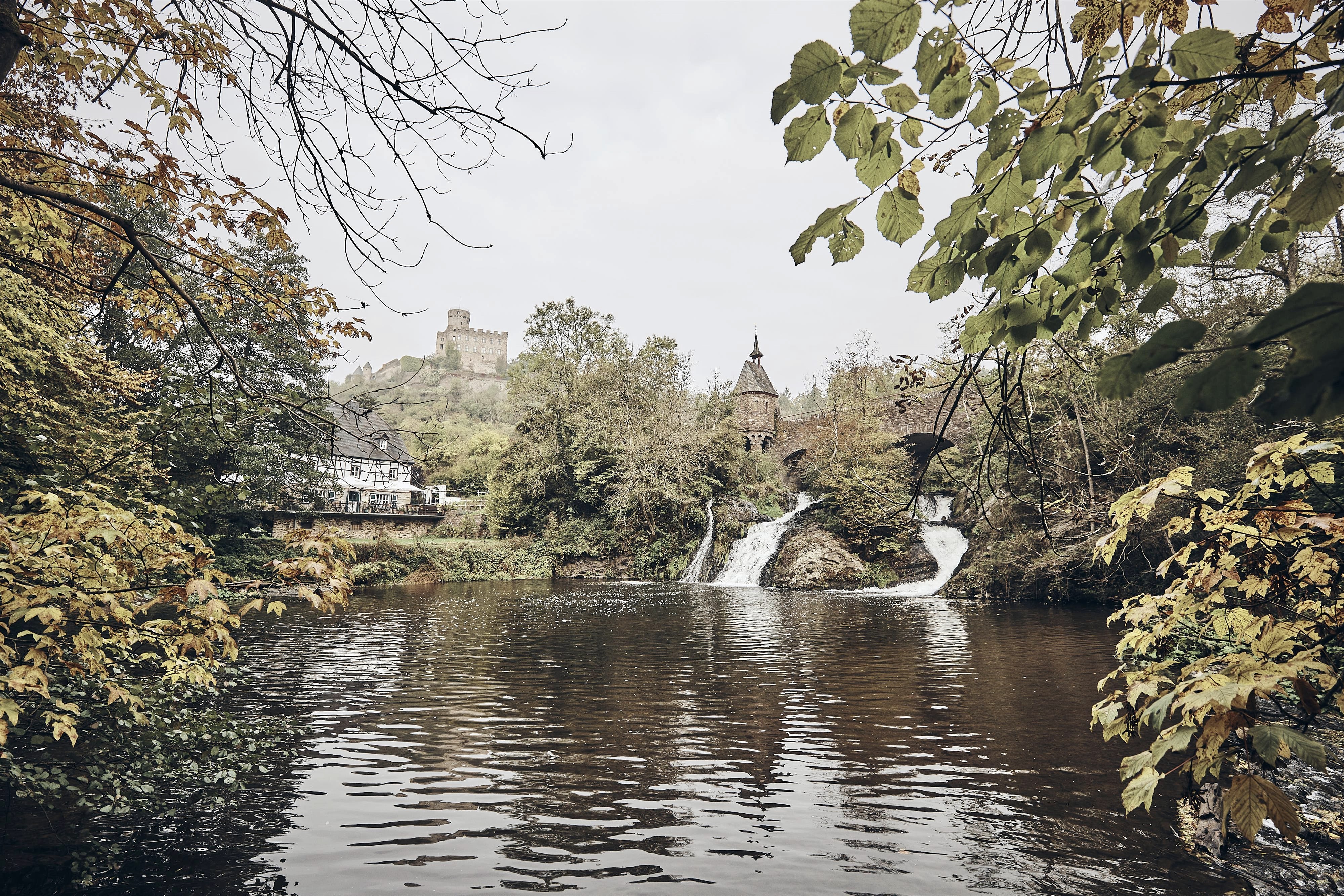 La chute d'eau au moulin de Pyrmont est particulièrement impressionnante - la plus grande chute d'eau de l'Eifel avec le château de Pyrmont en arrière-plan. Cet endroit est idéal pour faire une petite pause pendant une randonnée.