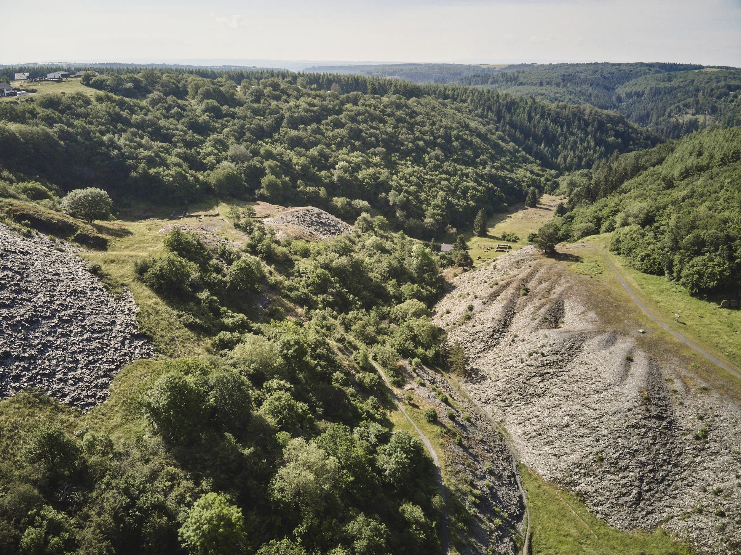 Depuis, de nombreux vestiges de bâtiments et de murs en pierres sèches ont été préservés de la ruine. Des entrées de galeries ont été ouvertes et des terrils de schiste ont été dégagés, et un chemin de randonnée circulaire a été aménagé. Des panneaux d'information avec des détails sur l'exploitation de l'ardoise, d'anciennes photos et des plans de mines, ainsi que d'anciens wagons d'extraction (Hunte dans le langage des mineurs), avec lesquels l'ardoise de la Moselle était transportée, donnent un petit aperçu. Un point fort particulier est la reconstitution d'une maison de clivage inaugurée en 2016 ! Profitez de l'offre d'une randonnée guidée par des guides compétents de l'« Association pour la préservation de l'histoire des mines d'ardoise » - inscription auprès de Rolf Stoll 01573-9343224.