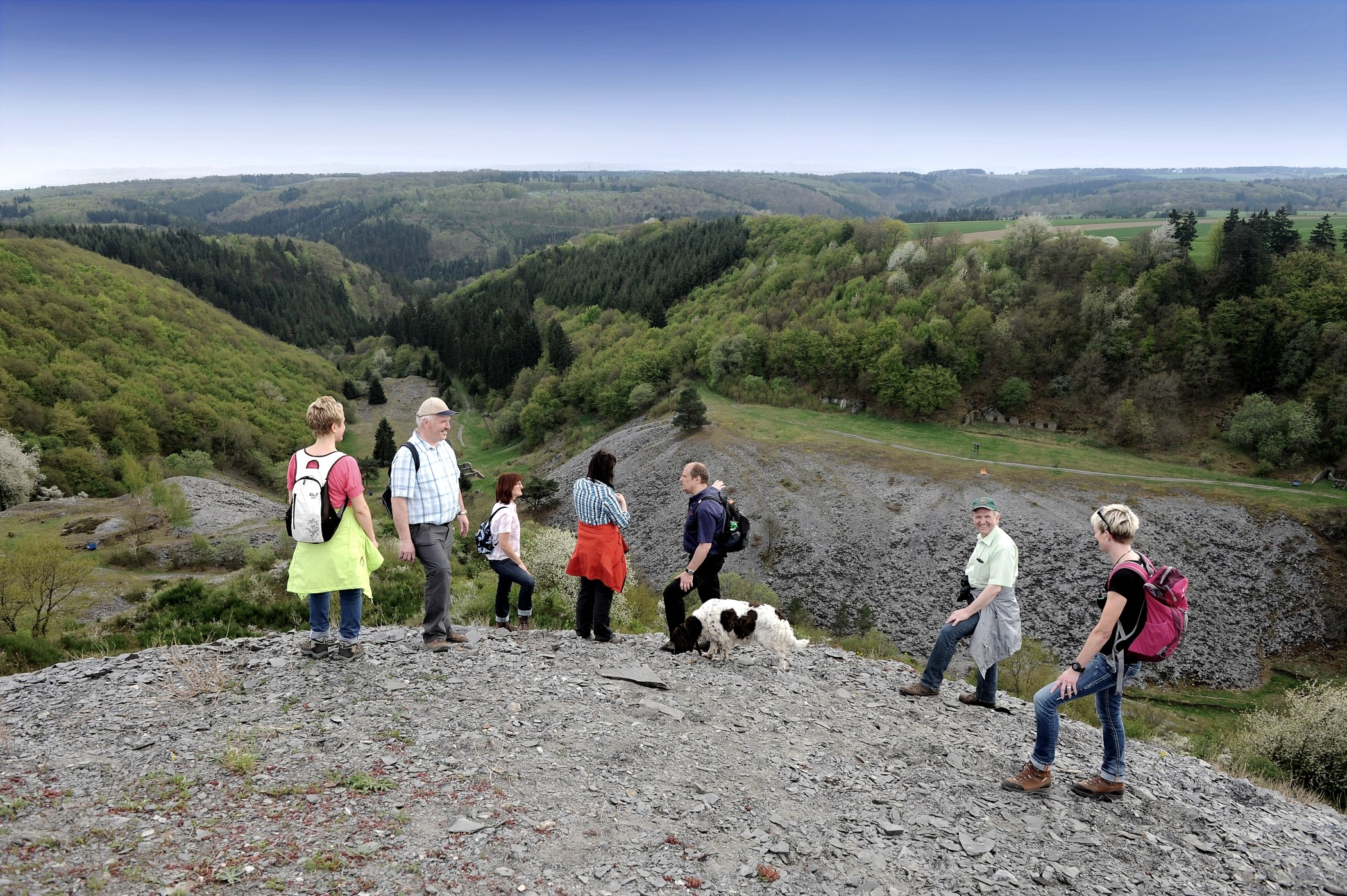 L'impressionnante vallée du Kaulenbach se situe entre les villages de Müllenbach, Laubach et Leienkaul dans l'Eifel. De 1695 à 1959, on y a extrait l'ardoise de toiture de la meilleure qualité du massif schisteux de la rive gauche du Rhin. Le sentier de randonnée des ardoisières nous mène à travers la "région des ardoises de Kaulenbachtal" , un point fort de la randonnée sur la célèbre "route de l'ardoise de la Moselle". La randonnée peut également être commencée à partir des trois localités. Avant même de commencer la randonnée le long d'un chemin au paysage unique, en passant par d'anciennes entrées de mines, des vestiges de bâtiments et une flore et une faune uniques, vous avez la possibilité de visiter une petite exposition permanente et une documentation sur le thème de l'exploitation minière de l'ardoise dans le hall Schieferland de Müllenbach.