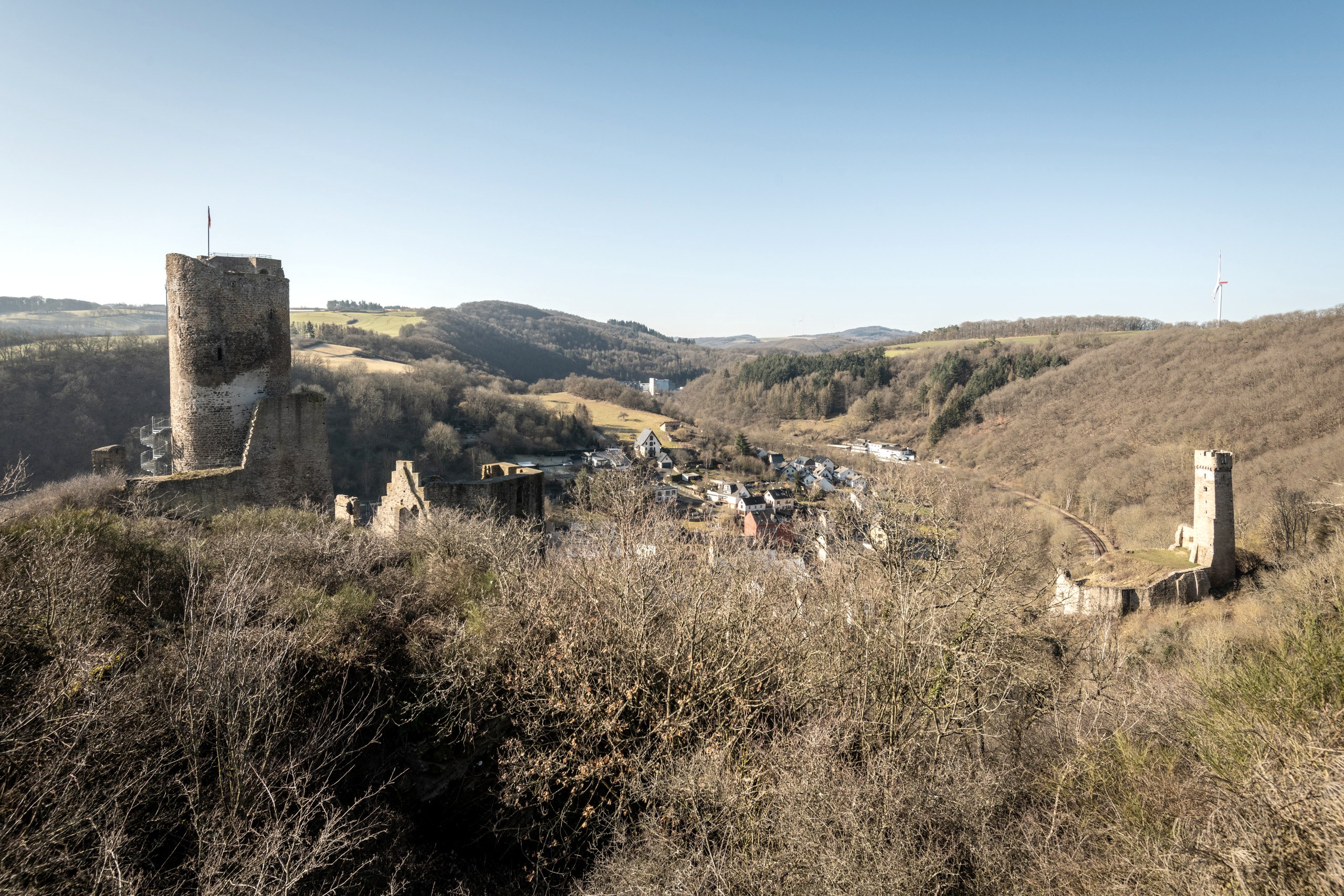 L'itinéraire débute dans le centre pittoresque du village, qui fascine encore plus avec ses ponts massifs en pierre naturelle et son église paroissiale qui vaut le détour. La montée est raide jusqu'au Löwenburg, dont le donjon, toujours haut de près de trente mètres, peut être escaladé. La vue sur la petite ville de Monreal, blottie dans d'épaisses forêts au bord de l'Elz, et sur le château voisin de Phillipsburg, dont les ruines ne sont qu'à un jet de pierre, est grandiose. Avec un peu d'aventure, il est possible de l'atteindre par un étroit sentier rocheux.