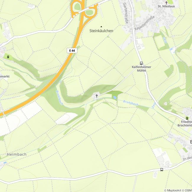 Le moulin de Kaifenheim, mentionné pour la première fois en 1005, est situé dans la vallée du Brohlbach, en pleine nature, entouré de prairies, de champs et de forêts, à 800 m du village de Kaifenheim.