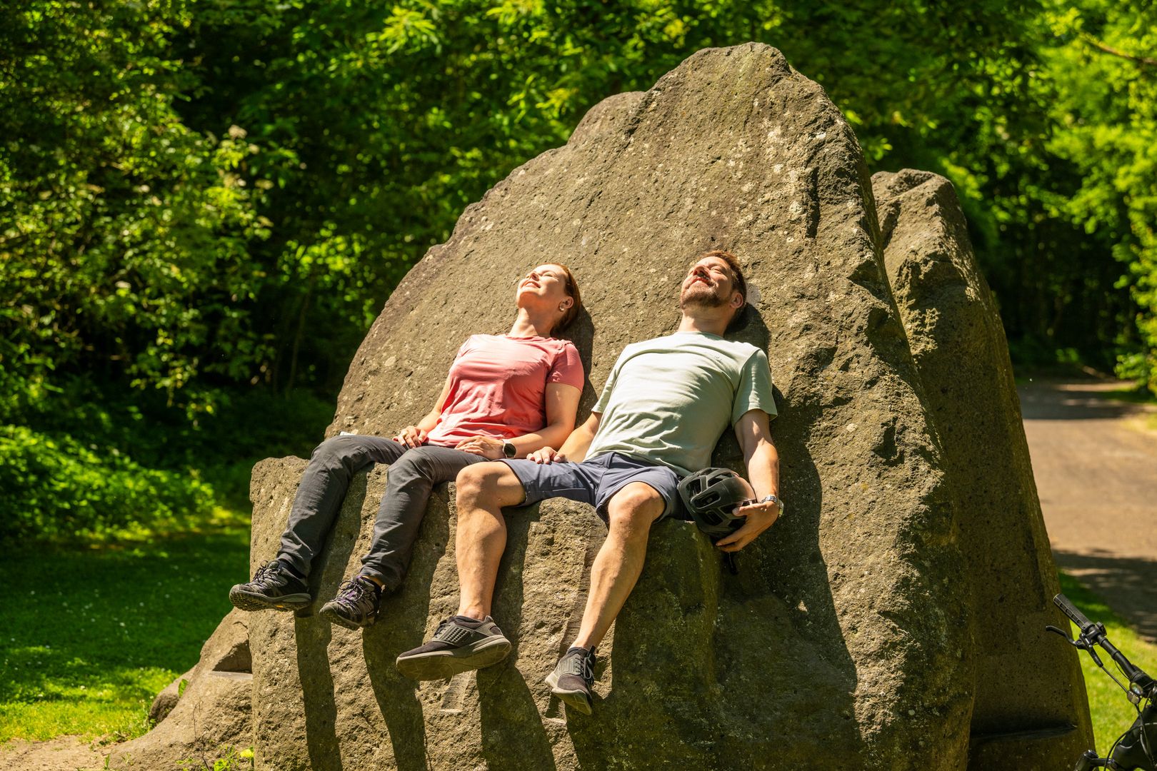 Tip: Vier excursies leiden van de hoofdroute van het vulkaanpark-fietspad af en geven verbinding aan het Vulkaanpark-infocentrum Rauschermühle in Plaidt/Saffig (excursie – 0,6 km), de Romeinse steengroeve Meurin in Kretz (excursie – 2,6 km), de Lava Dome en het Vulkaanmuseum in Mendig (excursie – 3,2 km) en het Mayener Grubenfeld (excursie – 0,8 km). Na ruim drie uur is het finish, de 2000-jarige `bakkerjongenstad´ Andernach aan de Rijn, bereikt.