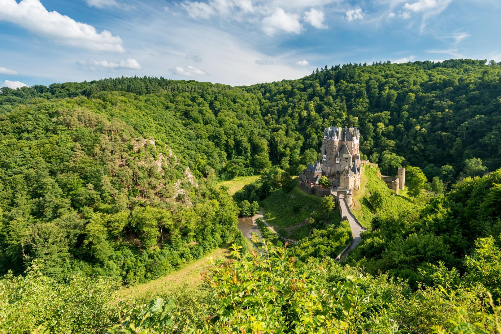 Gut versteckt mitten im Wald auf einem Felssporn liegt sie – imposant, anmutend und unbeschadet: die hochmittelalterliche Burg Eltz aus dem 12. Jahrhundert.