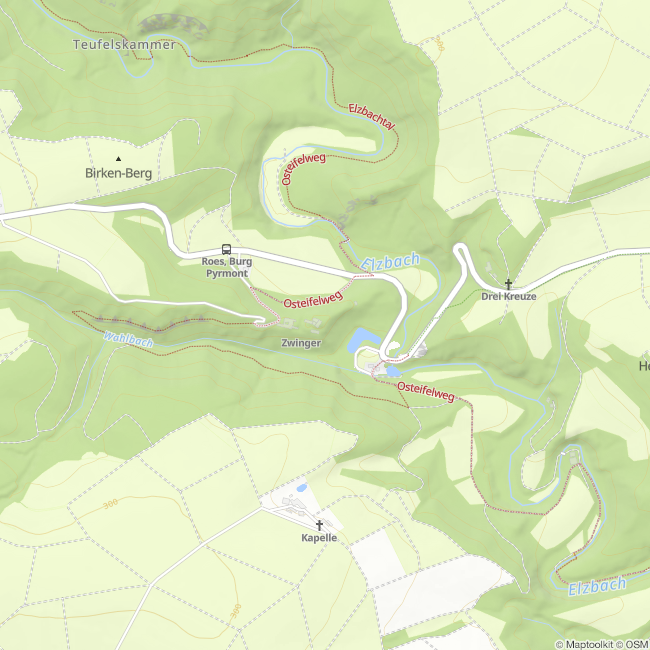 Unterhalb der mittelalterlichen Burg Pyrmont startet der Traumpfad „Pyrmonter Felsensteig“. Dieserwurde 2015 zum „Schönsten Wanderweg Deutschlands“ gekürt. Der Wanderweg führt hinauf auf die Höhen des Maifelds. Von dort aus, hat man eine wunderbare Weitsicht auf die Burg sowie zu den in der Osteifel gelegenen Vulkankegeln. Durch das Naturschutzgebiet am Juckelberg geht es hinab in das wilde, waldreiche Elztal. Die bewirtschaftete Pyrmonter Mühle lädt zu einer Rast am Weg ein.