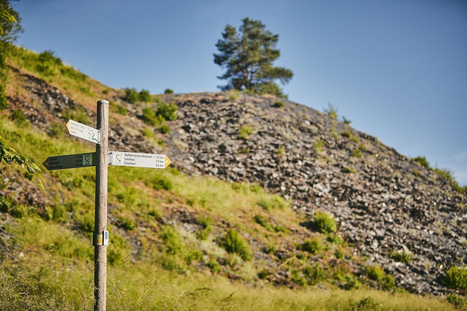 Als „Sinnbild der Eifelmelancholie“ gilt das Weinfelder Maar. Sanfte Hänge, auf denen im Frühsommer das Eifelgold – wie der Besenginster im Volksmund heißt – leuchtet, liegen rund um das meist türkis schimmernde Wasser.