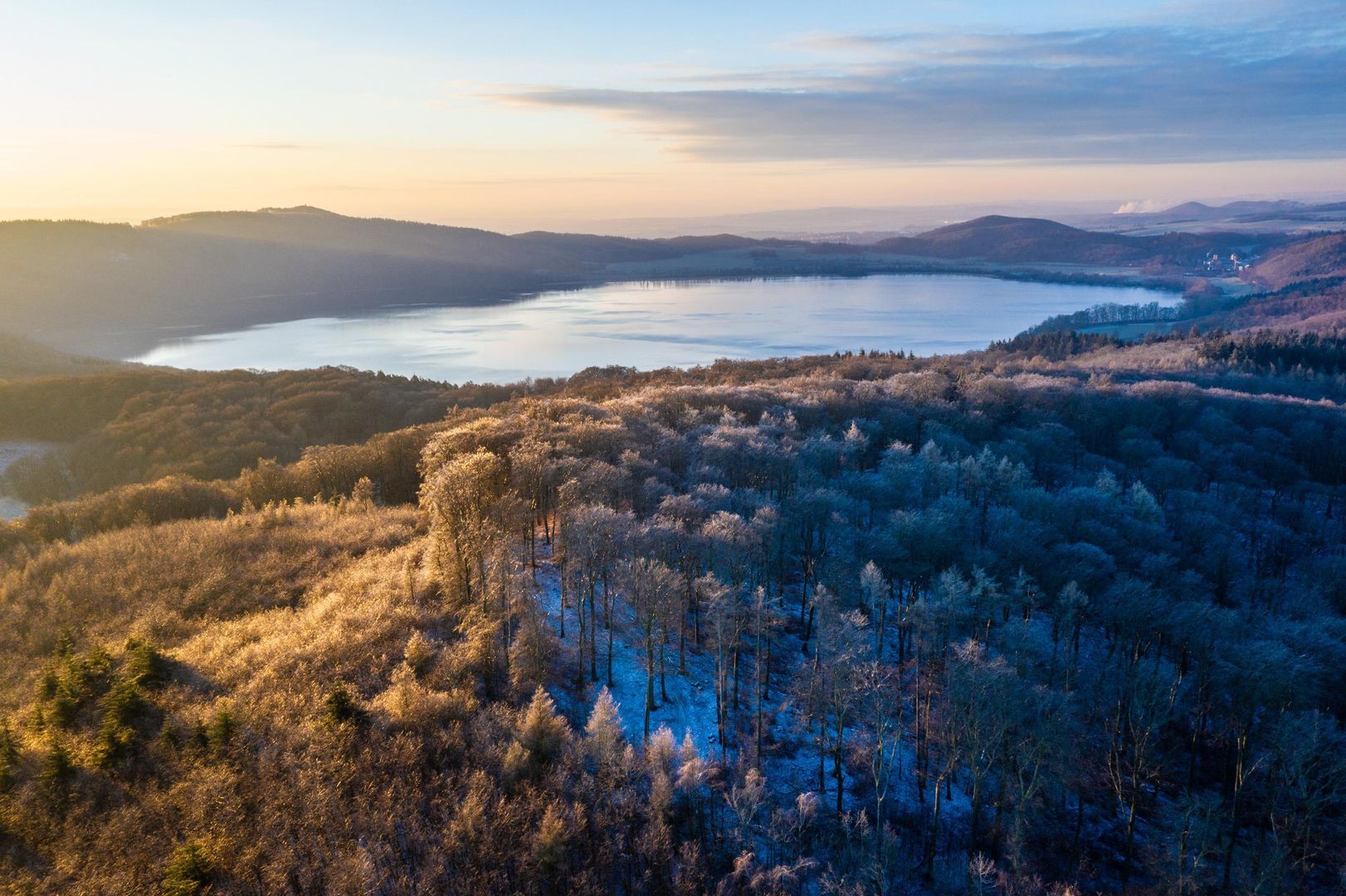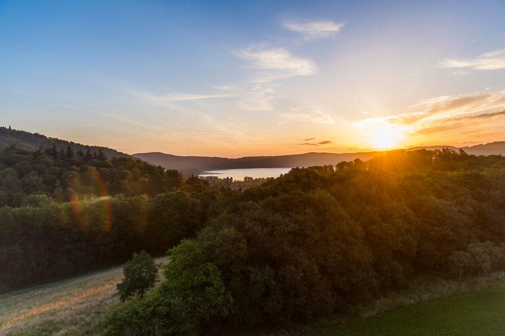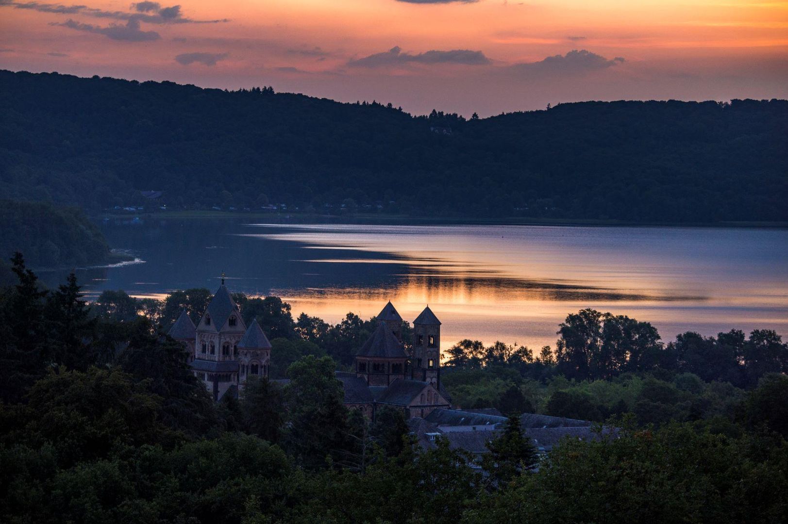 Später dann, im Laufe der Jahrtausende,füllte sich der riesige Krater schließlich mit Wasser und es entstand der Laacher See. Mit einer Größe von rund 3,3 Quadratkilometern und einer Wassertiefe von mehr als 50 Metern ist er der größte See in Rheinland-Pfalz und ein beliebtes Ausflugsziel für Badegäste, Camper und Erholungssuchende sowie Besucher der nahegelegenen Benediktinerabtei Maria Laach, zu deren Besitztümern der Laacher See gehört. Im schilfbewachsenen und von Seerosen durchzogenen Uferzonen lassen sich zudem jedes Jahr seltene Wasservögel beobachten.