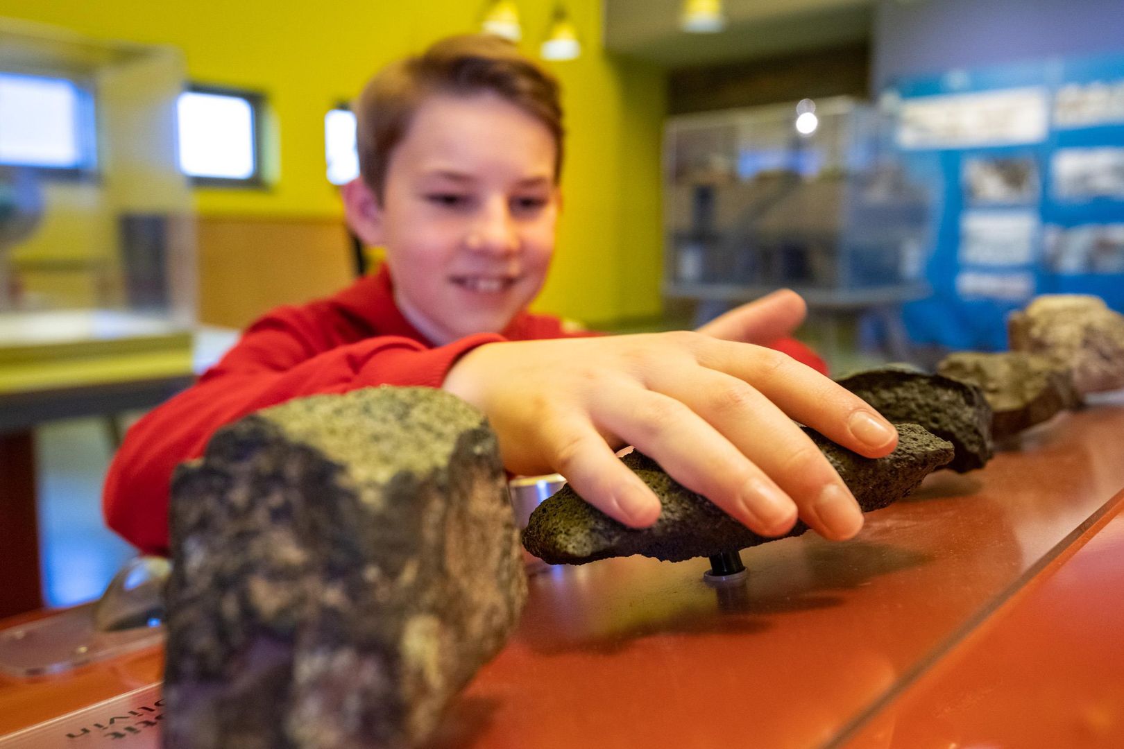 Die „Zeit der Vulkane“ lässt Steine sprechen: Wer sie berührt, hört und sieht, wie die großen Ausbrüche vergangener Zeit abliefen. Besonders spannend sind auch aktuelle seismologische Daten zu Vulkanausbrüchen und Erdbeben sowie aktuelle Bilder von Webcams in aller Welt, die online abgerufen werden. Ein nachgestelltes Forschercamp verdeutlicht, mit welchen Methoden und Techniken die Wissenschaft Vulkane unter die Lupe nimmt. Und im Rundkino lässt eine hollywoodreife, fiktive Nachrichtensendung den Atem stocken, denn hier wird klar, was ein erneuter Ausbruch des Laacher-See-Vulkans bedeuten würde.