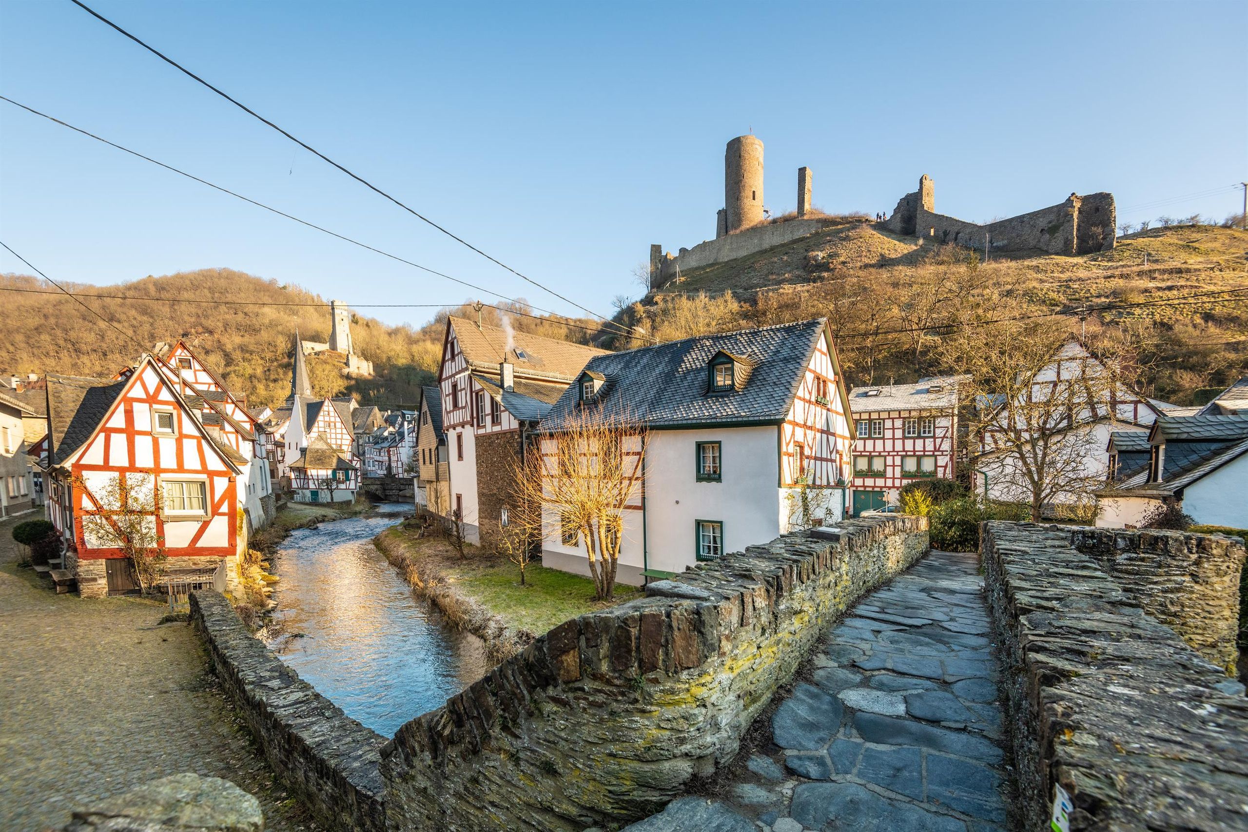 Die Löwenburg oberhalb des Fachwerkdorfs Monreal ist eine sogenannte Spornburg und wurde erstmals im Jahre 1229 urkundlich erwähnt.