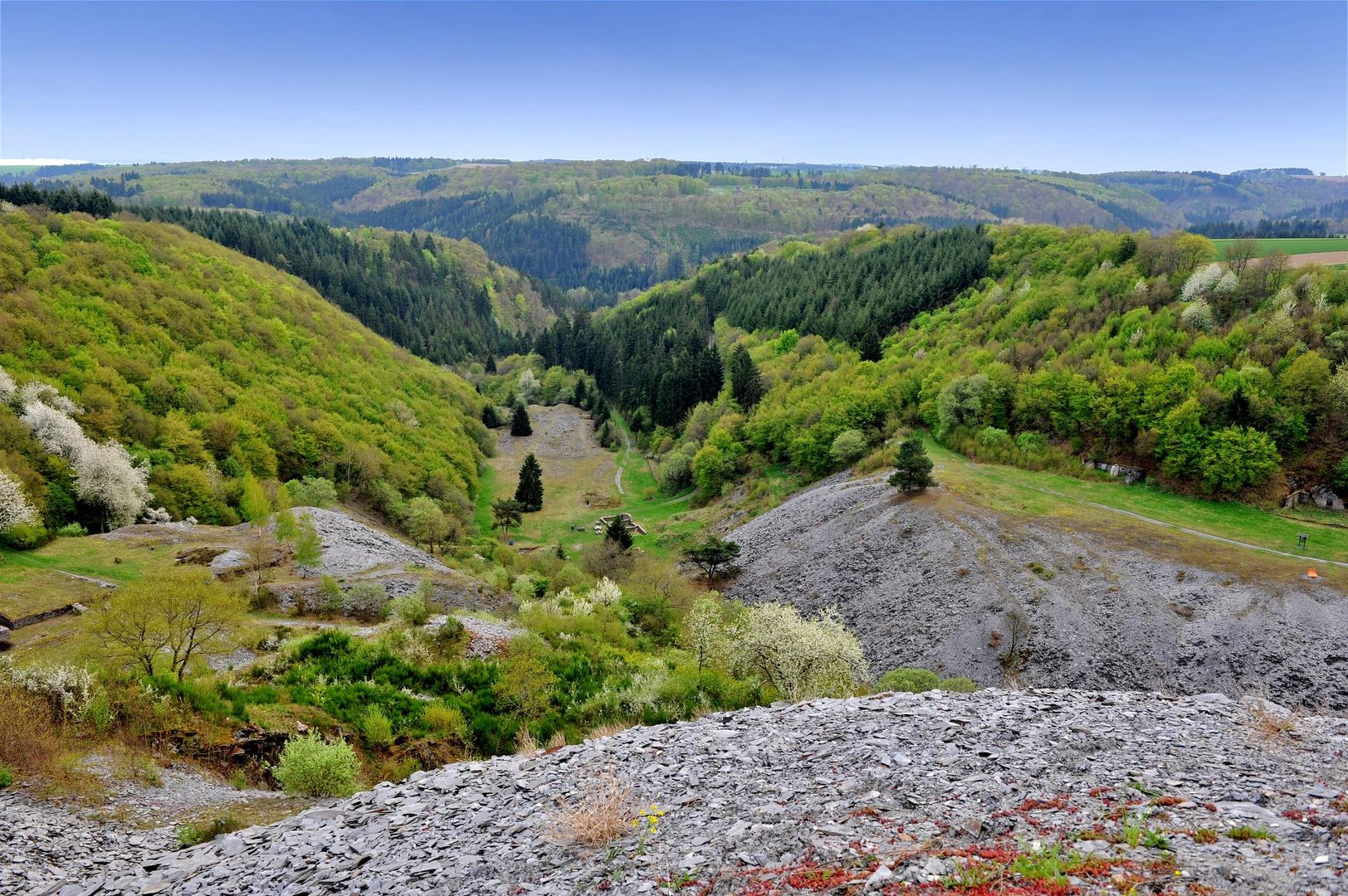 Das Bindeglied all dieser Landschaften ist die hier ansässige Schiefergewinnung und -verarbeitung und die seidig glänzenden Schieferdächer links und rechts des Weges. Denn dieser Teil der Eifel ist ein Zentrum der europäischen Schieferindustrie. Schiefer wird hier schon seit der Römerzeit abgebaut und der Begriff „Moselschiefer®" ist mit einer urkundlichen Erwähnung von 1588 einer der ersten Markenbegriffe überhaupt.