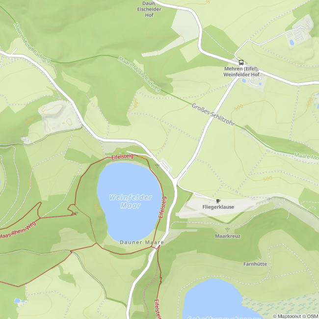 Parken können Gäste entlang der L64 entweder auf dem Parkplatz am Weinfelder Maar oder auf dem Maarsattel zwischen dem Weinfelder und dem Schalkenmehrener Maar.