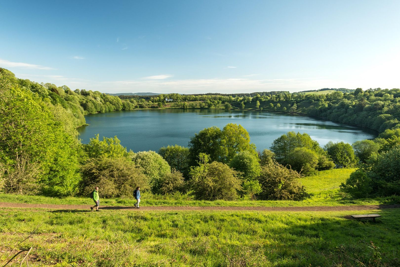 Eine geradezu melancholische Atmosphäre umgibt das Maar. Viele Sagen ranken sich um das stille Eifelauge. So soll einst ein Schloss an der Stelle des Kraters gestanden haben, in dem ein Graf mit seiner Gemahlin und seinem einzigen Kind lebte. Nach der Heimkehr von einer Jagd war das Schloss zur Strafe für die Garstigkeit der Frau versunken und er fand nur noch einen See vor, auf dem eine Wiege sein Kind wie, durch ein Wunder, wohlbehalten ans Ufer trieb. Betrachtet man nur lange genug die dunkle Wasseroberfläche, so heißt es, kann man die Umrisse des Schlosses erkennen.