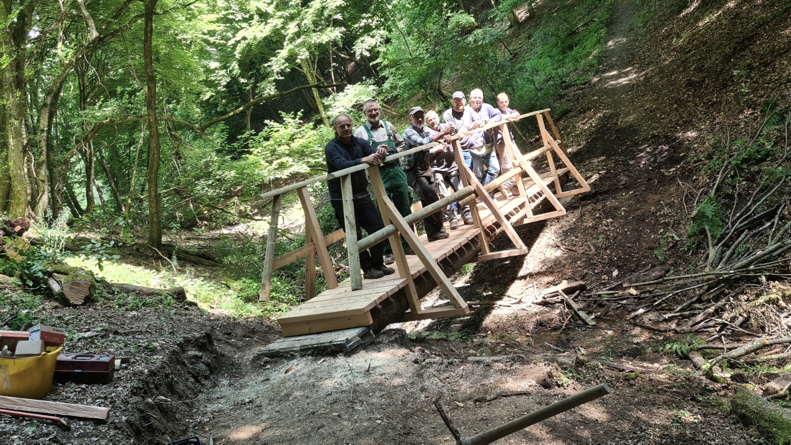 Durch umgestürzte Bäume wurde die Brücke vom Wanderweg Kaulenbachtal, die über den Sesterbach führt, sehr stark beschädigt. Bei einem Ortstermin, bei dem von der Verbandsgemeindeverwaltung Kaisersesch die Touristikerin Linda Bamberg, Verwaltungsmitarbeiter Michael Schmitt sowie der Ortsbürgermeister von Leienkaul, Burkhard Klinkner, teilnahmen, musste zudem festgestellt werden, dass die Tragwerksstämme morsch waren. Leider blieb keine andere Wahl, als die Brücke abzureißen und neu aufzubauen.