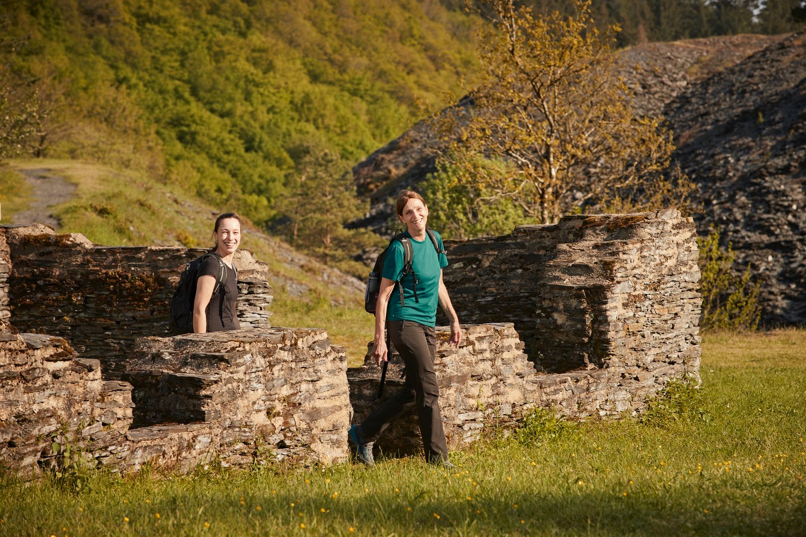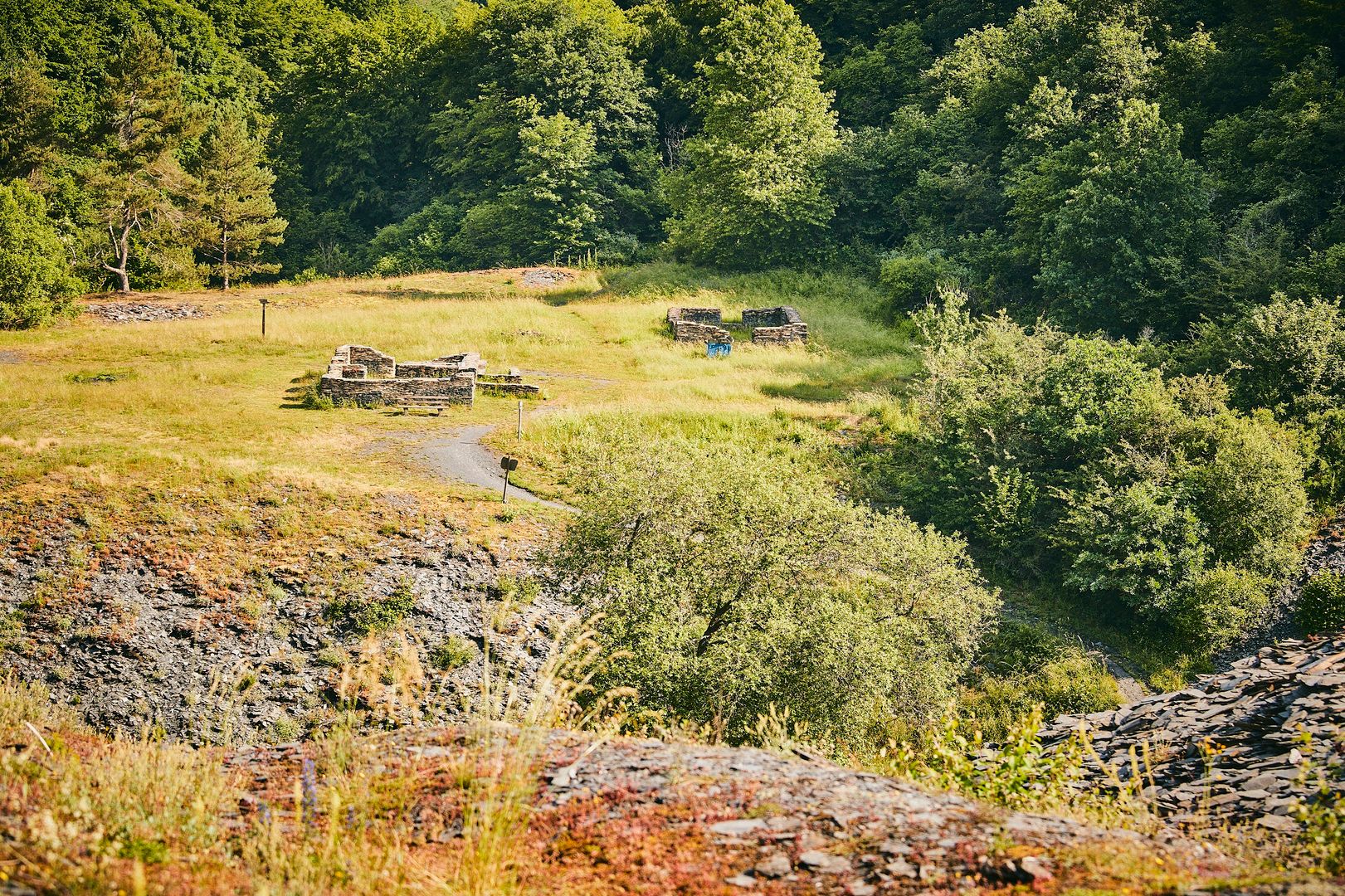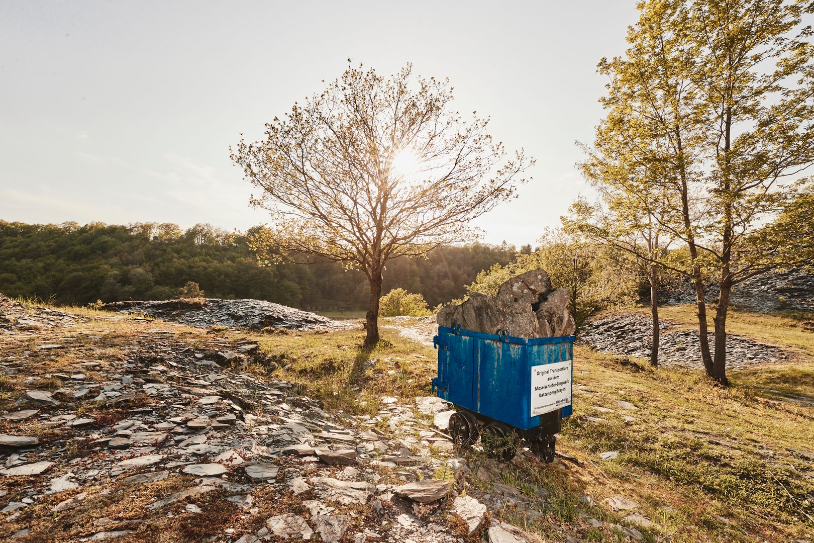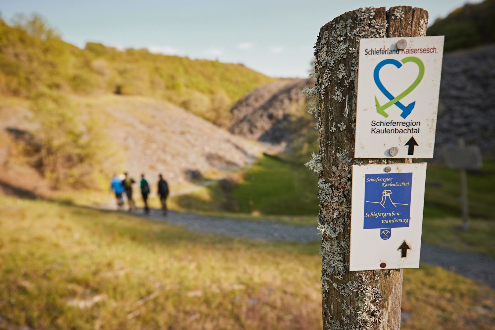 Erlebnisreich und vielfältig: der Rundwanderweg Schieferregion Kaulenbachtal! Der 14,2 km lange Wanderweg bietet die Möglichkeit, in einem der drei idyllischen Eifelorte zu starten: Müllenbach, Leienkaul oder Laubach. Während der Tour erwarten dich zahlreiche alte Schiefergruben, wie beispielsweise die Grube Colonia oder Maria-Schacht. Du wanderst zwischen Gebäuderesten der ehemaligen Spalthallen und Bergarbeiter-Häusern, sowie entlang der Streckenführung der ehemaligen Grubenbahn (Banntje).