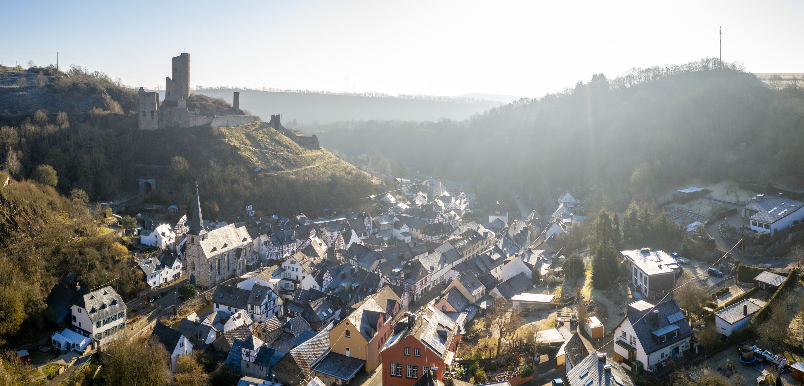 Rundwanderung rund um das idyllische Fachwerkdorf Monreal in der Eifel mit tollen Ausblicken und zwei Burgruinen