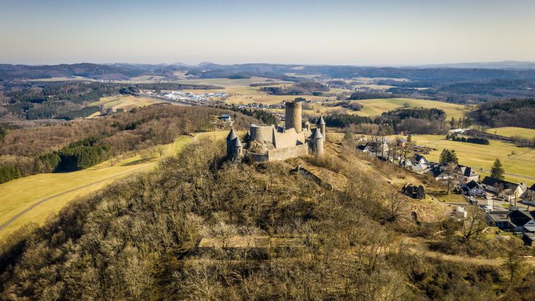 die Motoren, „brodelt“ die Zuschauermenge. Sowohl die Ferienregion GesundLand Vulkaneifel als auch die Ferienregion Hocheifel-Nürburgring lernen Sie bei Ihrer Radtour auf der Vulkan-Rad-Route Eifel kennen. Dabei ist gute Kondition von Nöten, denn bereits zu Beginn der 68 Kilometer langen Radtour von Dümpelfeld bis Bad Bertrich erwartet Sie ein langgezogener Anstieg über das Eifel-Städtchen Adenau bis hinauf nach Nürburg. Hier ist der Nürburgring „zuhause“ und die bereits von Weitem sichtbare Ruine Nürburg thront auf einem erloschenen Vulkan. Bei klaren Wetterverhältnissen sehen Sie zu Füßen der Burg Streckenabschnitte der legendären Rennstrecke. Aber auch die höchste Erhebung der Eifel, die Hohe Acht (747 Meter) und bewaldete Vulkankegel der Eifel sind gut erkennbar. Nach dem Besuch der Burgruine geht es bergab; sechs Kilometer lang frischer Fahrtwind! Auf den nächsten Kilometern quert der Radweg ein verlandetes Trockenmaar und streift das jüngste der Eifeler Maare, das Ulmener Maar. Die folgenden Radkilometer führen durch Eifeldörfer, bewirtschaftete Felder, Wiesen und Wälder. Auf der Lutzerather Höhe wird dem Radfahrer noch einmal ein phantastischer Panoramablick über den Nürburgring, die Vulkaneifel und sogar bis zu den Hunsrückhöhen geboten. Nach einer finalen Abfahrt ist das Ziel der Radtour erreicht, der Kurort Bad Bertrich. Wer nun Erholung sucht, kann sich in der Vulkaneifel Therme, Deutschlands einziger Glaubersalztherme, entspannen.