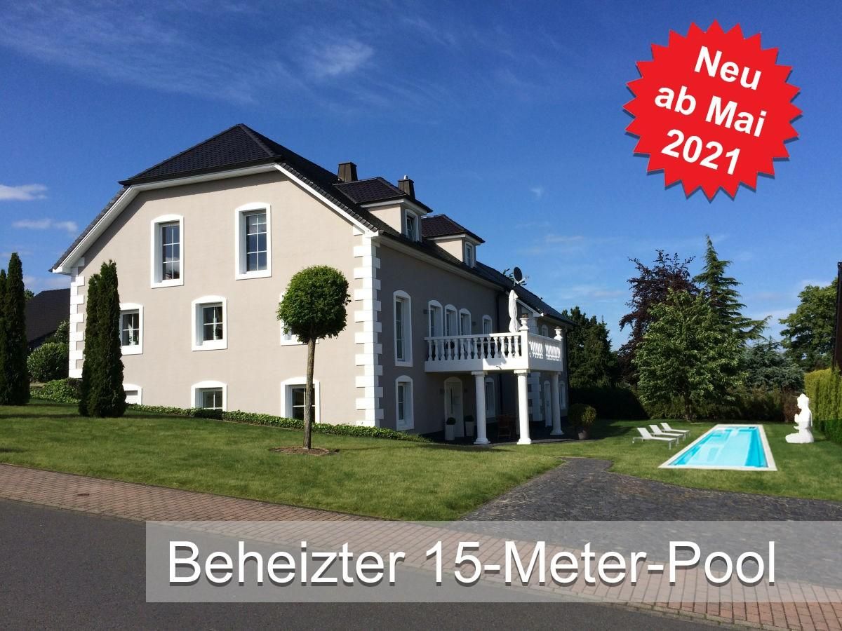 Genießen Sie Ihren Urlaub in unserer modernen Ferienwohnung mit beheiztem 15 Meter-Pool (Mai-Oktober) und eigener Sauna in Ortsrandlage.