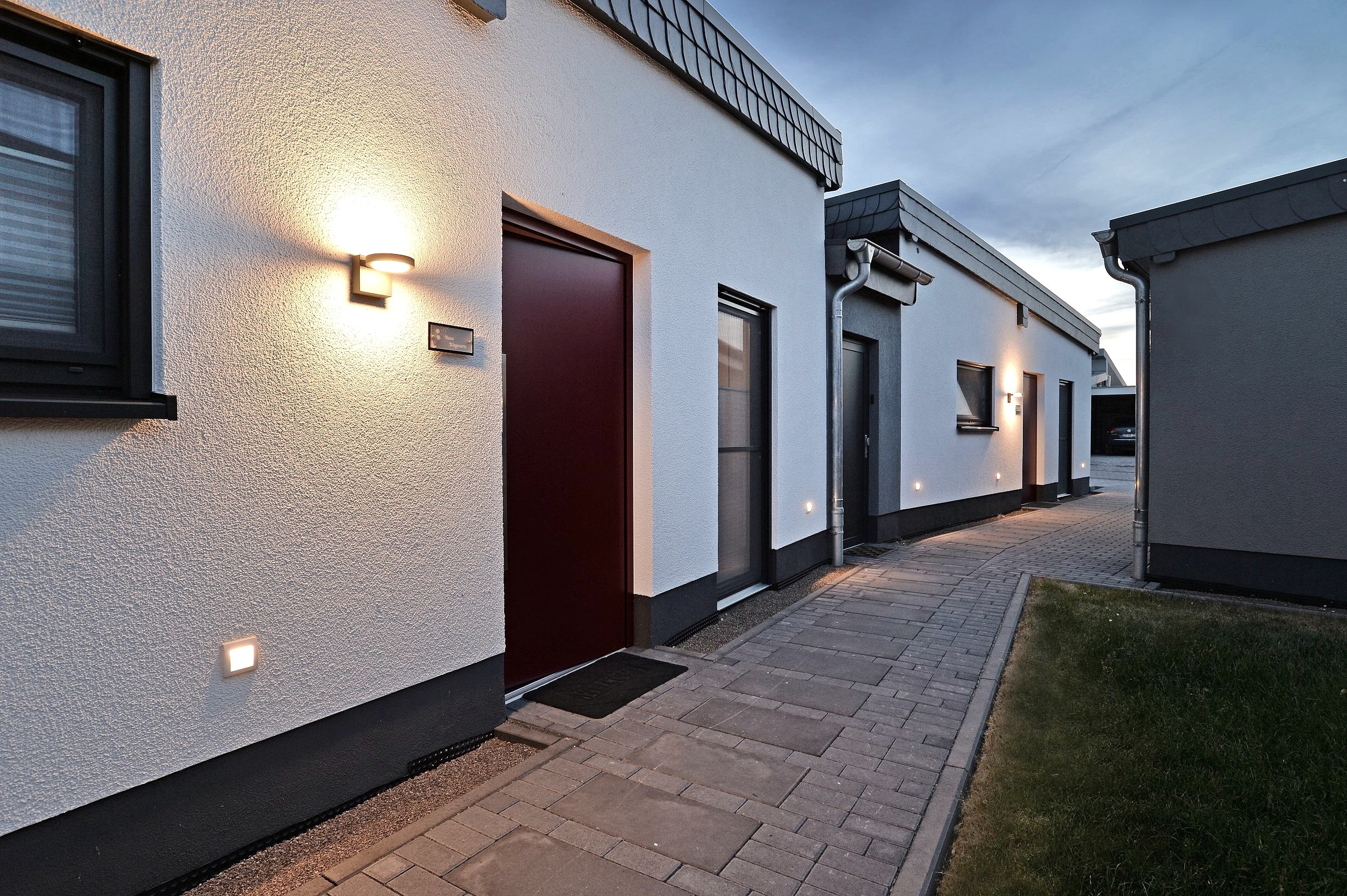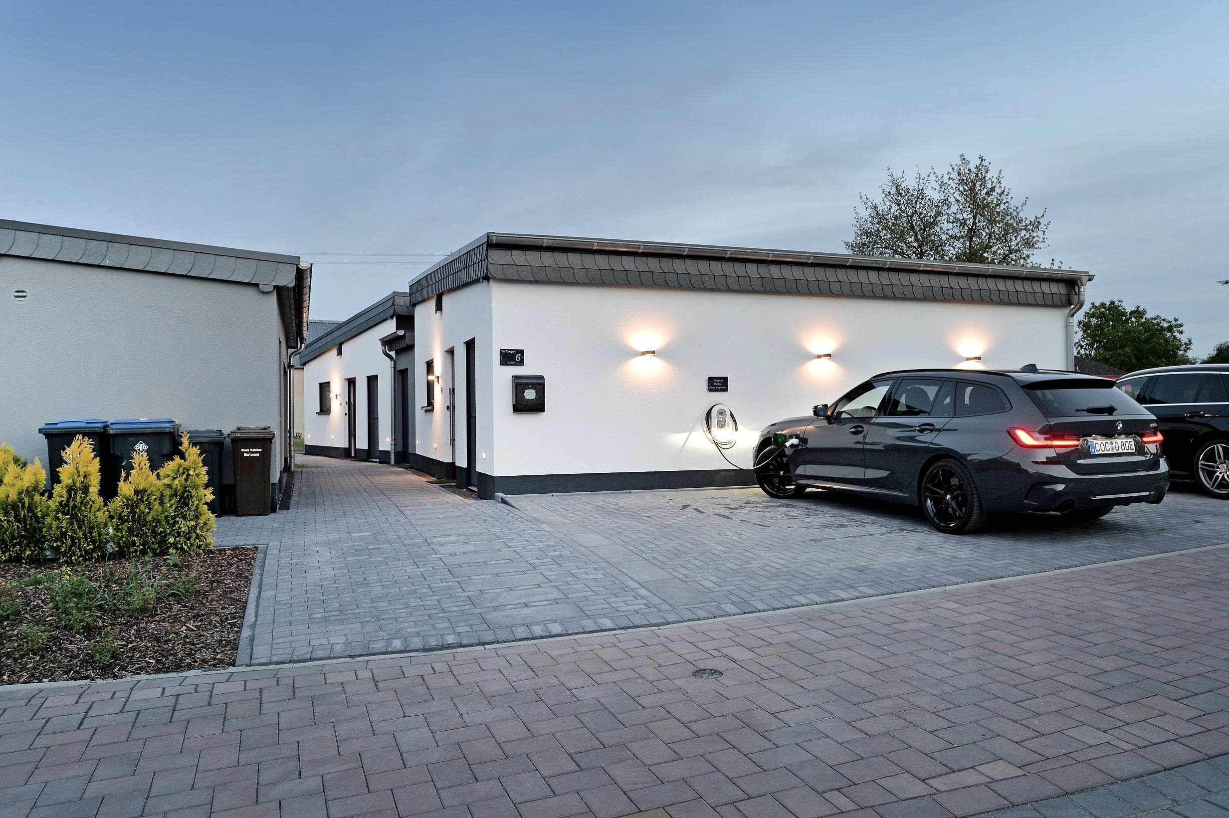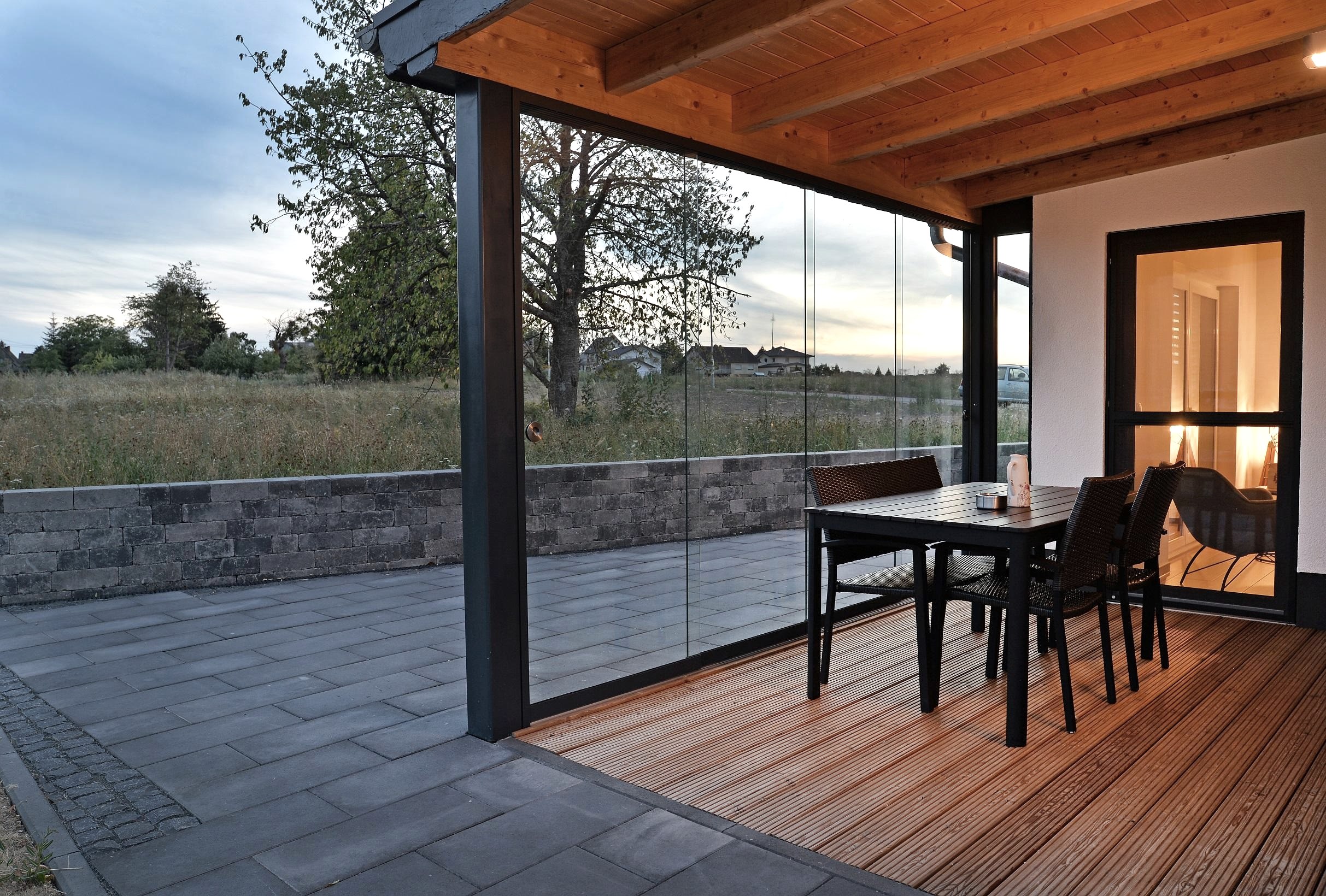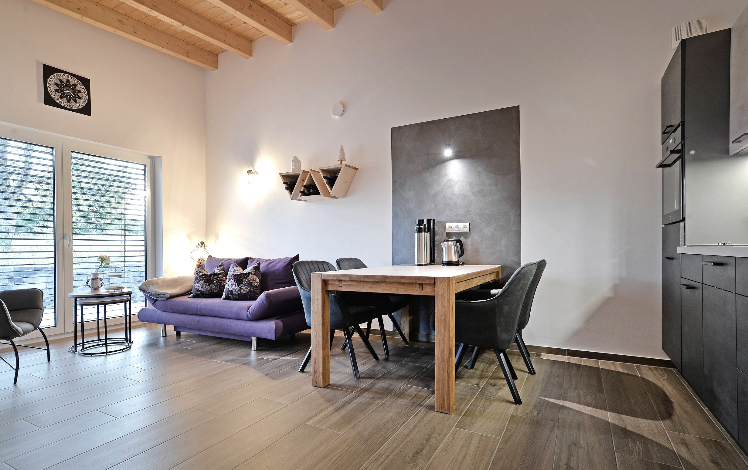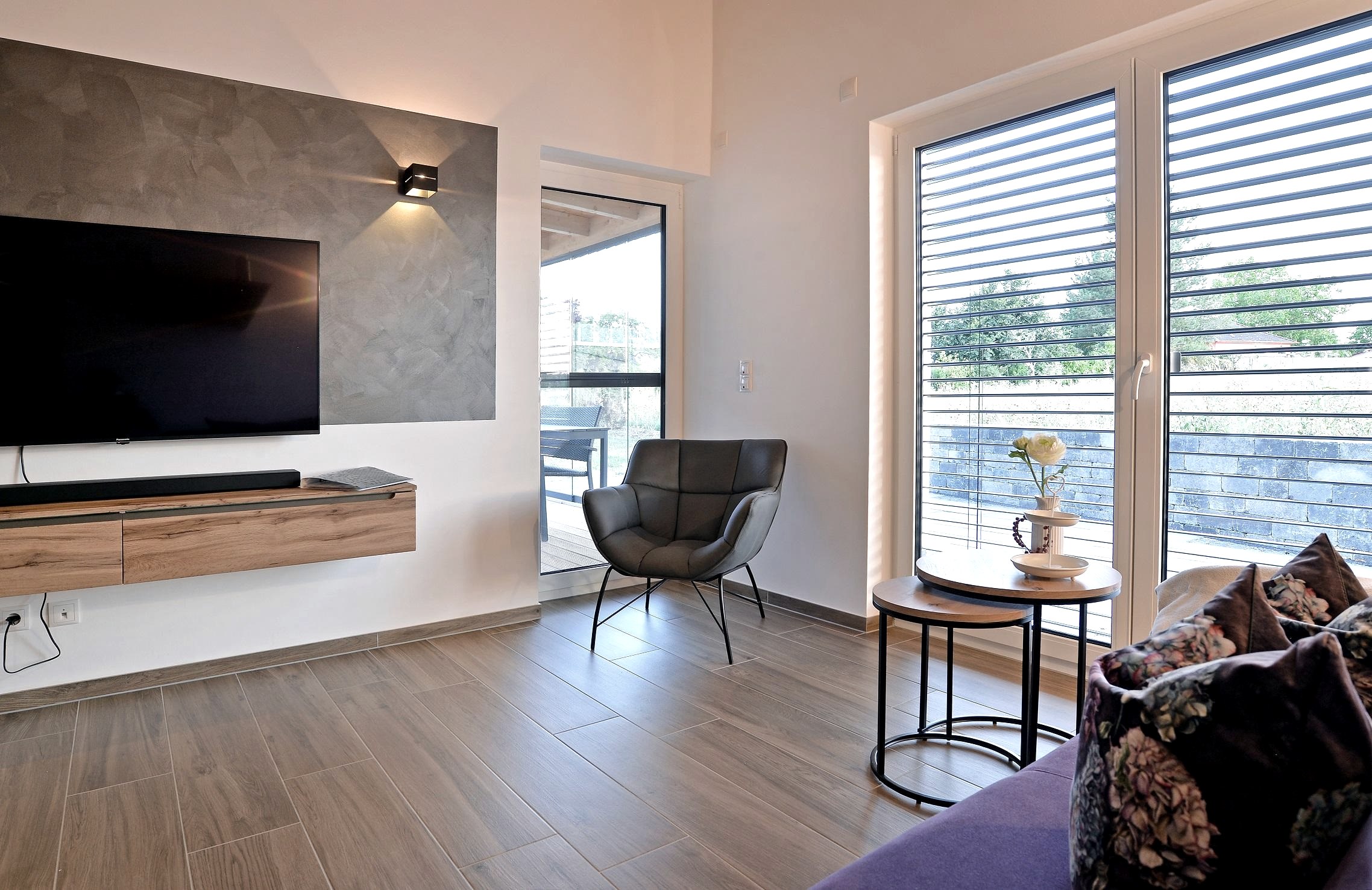 Unsere Ferienhäuser verfügen jeweils über ein Doppelzimmer, ein Einzelzimmer, einem großzügigen Bad mit Infrarotkabine und einem offenen Wohnraum mit Küche. Die großzügige Terrasse hat einen direkten Zugang vom Wohnraum, aber auch vom Schlafzimmer aus. Die Terrasse ist bei Bedarf von drei Seiten wind- und regengeschützt und kann so auch an kühlen Herbsttagen genutzt werden. An warmen Tagen könnt ihr die mobile Glaswand öffnen. Die Fenster sind mit einem Fliegenschutz versehen. Im gemeinsam zu nutzenden Hauswirtschaftsraum stehen für jedes Ferienhaus je eine Waschmaschine und je ein Trockner kostenlos zur Verfügung. In der abschließbaren Fahrradgarage stehen eure Räder sicher. Es befinden sich dort sechs Steckdosen für die Ladegeräte eurer Pedelecs und ausreichend Ablageflächen. Eure Räder könnt ihr dort bei Bedarf anketten.