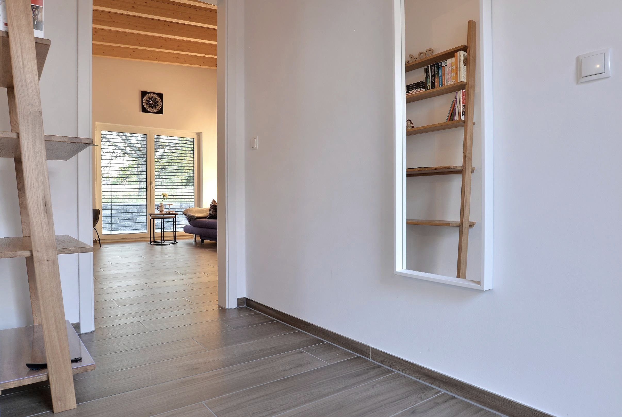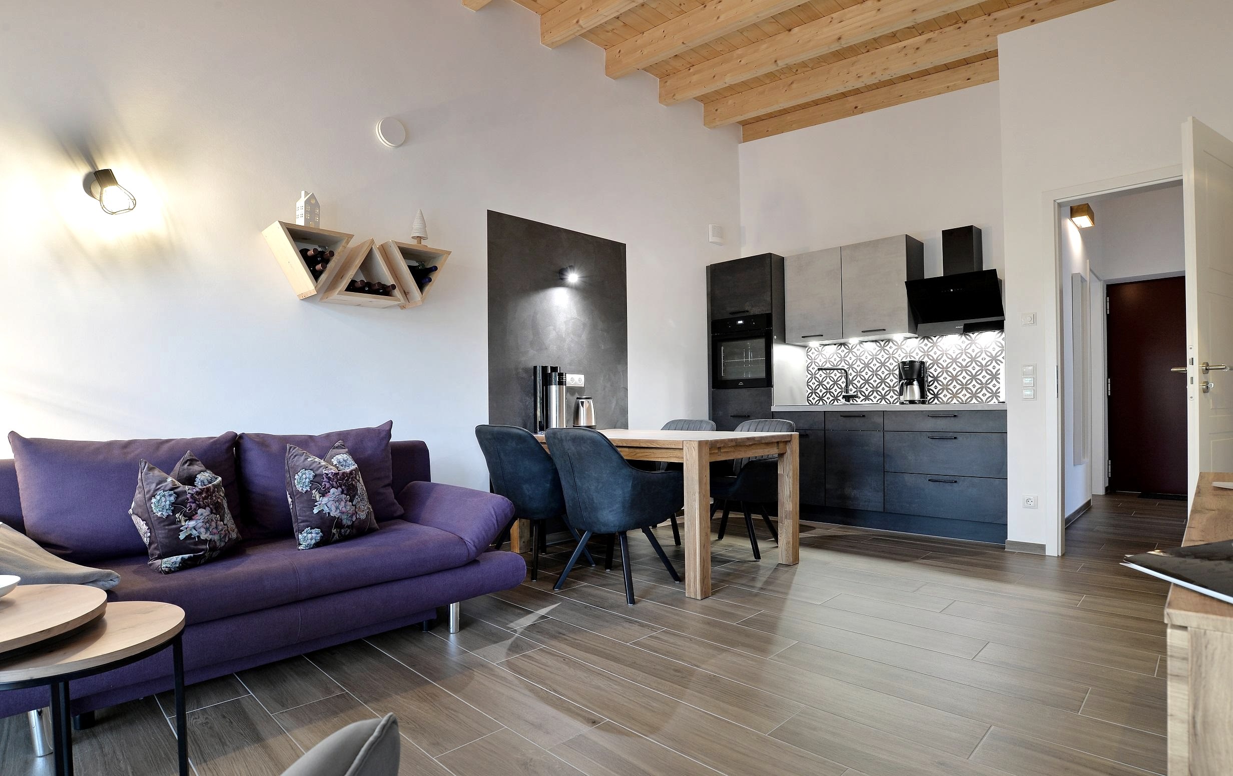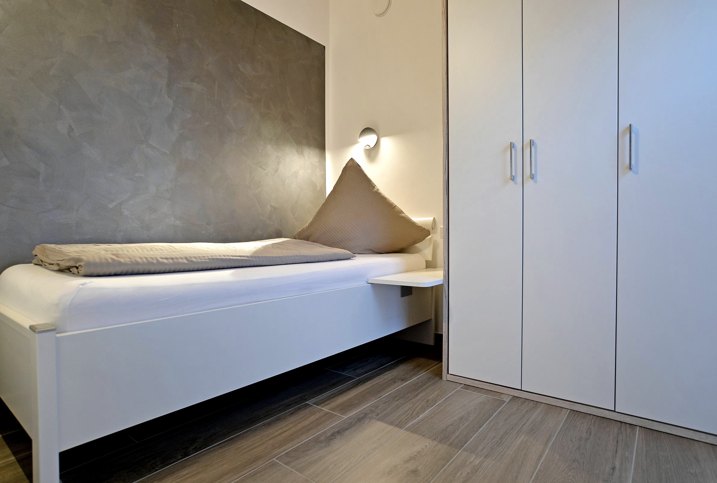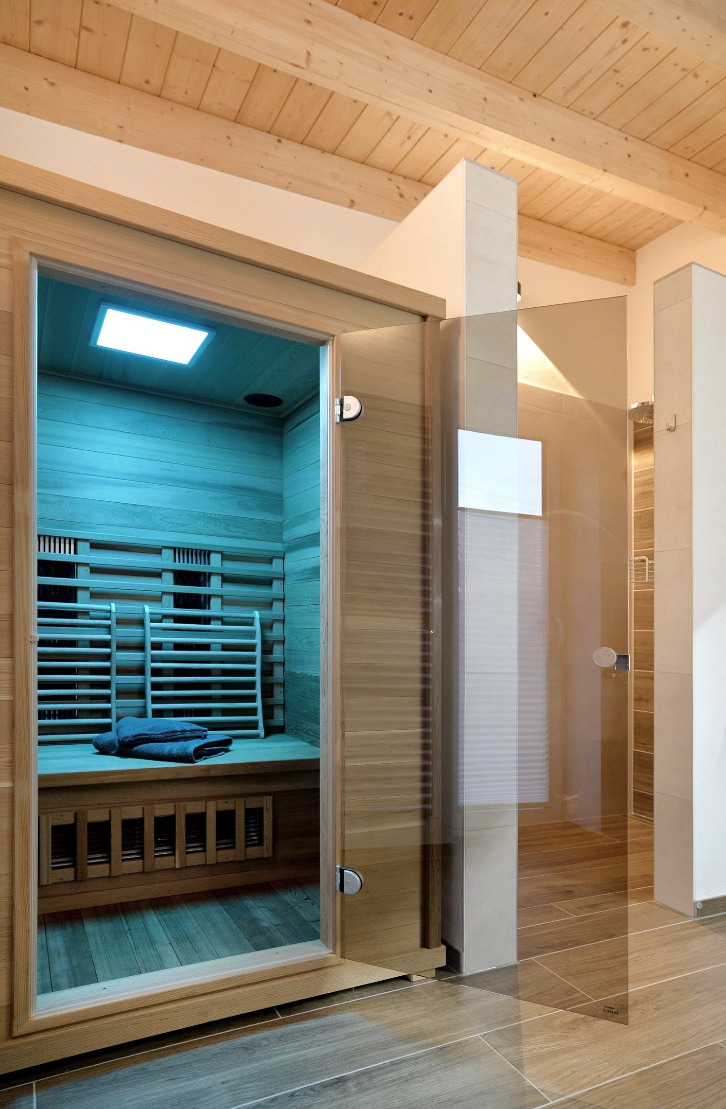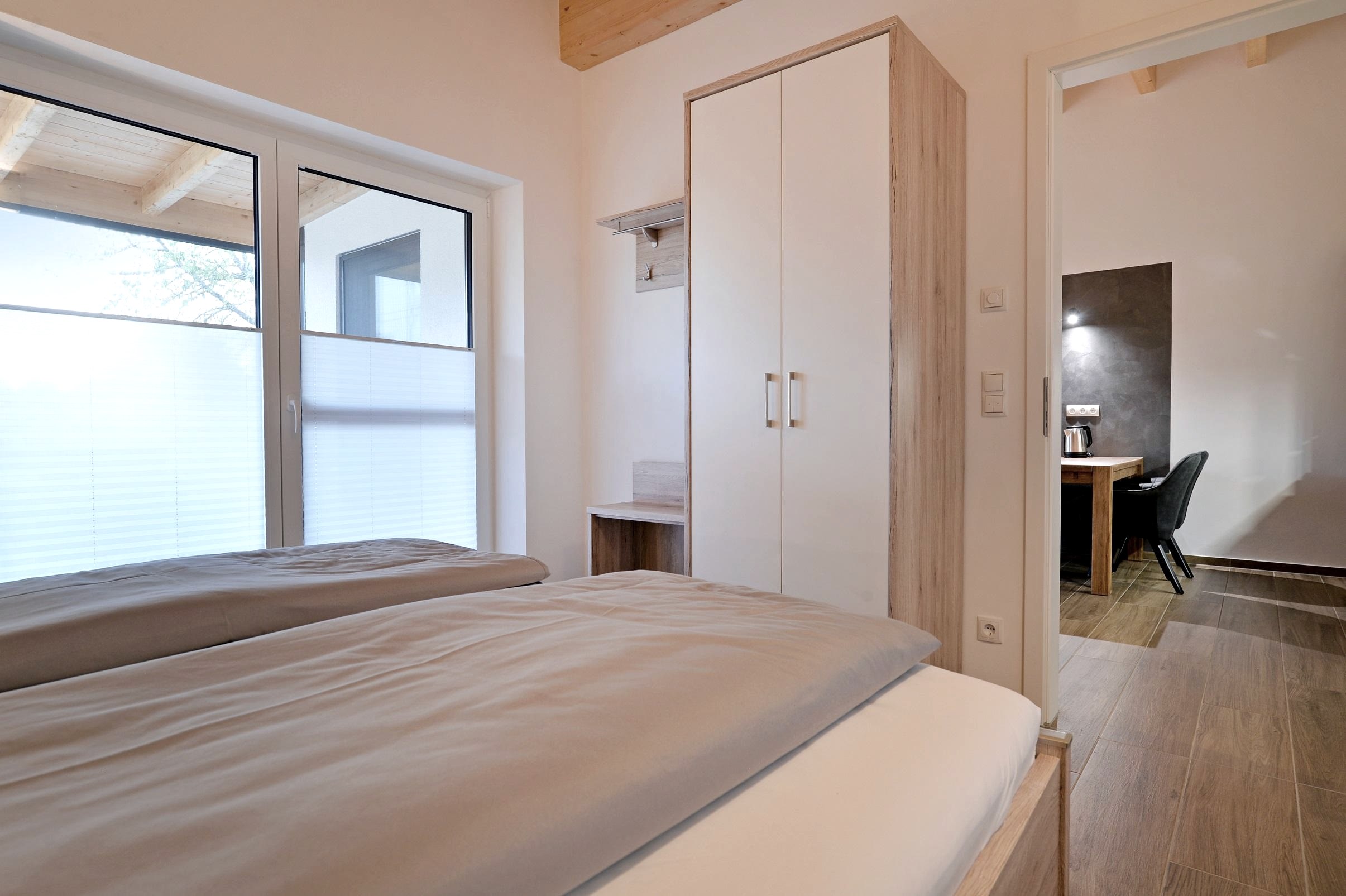 Unsere Ferienhäuser verfügen jeweils über ein Doppelzimmer, ein Einzelzimmer, einem großzügigen Bad mit Infrarotkabine und einem offenen Wohnraum mit Küche. Die großzügige Terrasse hat einen direkten Zugang vom Wohnraum, aber auch vom Schlafzimmer aus. Die Terrasse ist bei Bedarf von drei Seiten wind- und regengeschützt und kann so auch an kühlen Herbsttagen genutzt werden. An warmen Tagen könnt ihr die mobile Glaswand öffnen. Die Fenster sind mit einem Fliegenschutz versehen. Im gemeinsam zu nutzenden Hauswirtschaftsraum stehen für jedes Ferienhaus je eine Waschmaschine und je ein Trockner kostenlos zur Verfügung. In der abschließbaren Fahrradgarage stehen eure Räder sicher. Es befinden sich dort sechs Steckdosen für die Ladegeräte eurer Pedelecs und ausreichend Ablageflächen. Eure Räder könnt ihr dort bei Bedarf anketten.