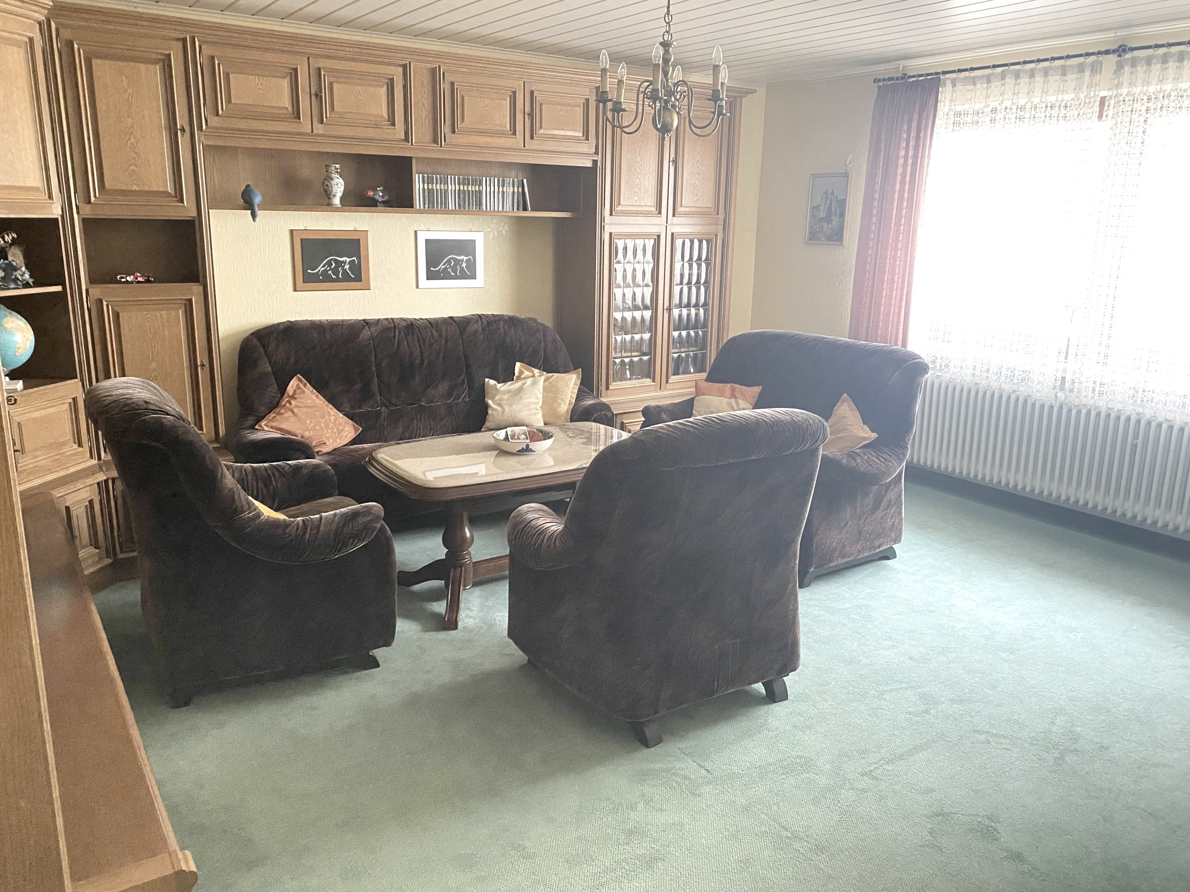 • einen gemütlichen Wohnraum mit 3-Sitzer, 2-Sitzer, Sessel und Flachbild TV