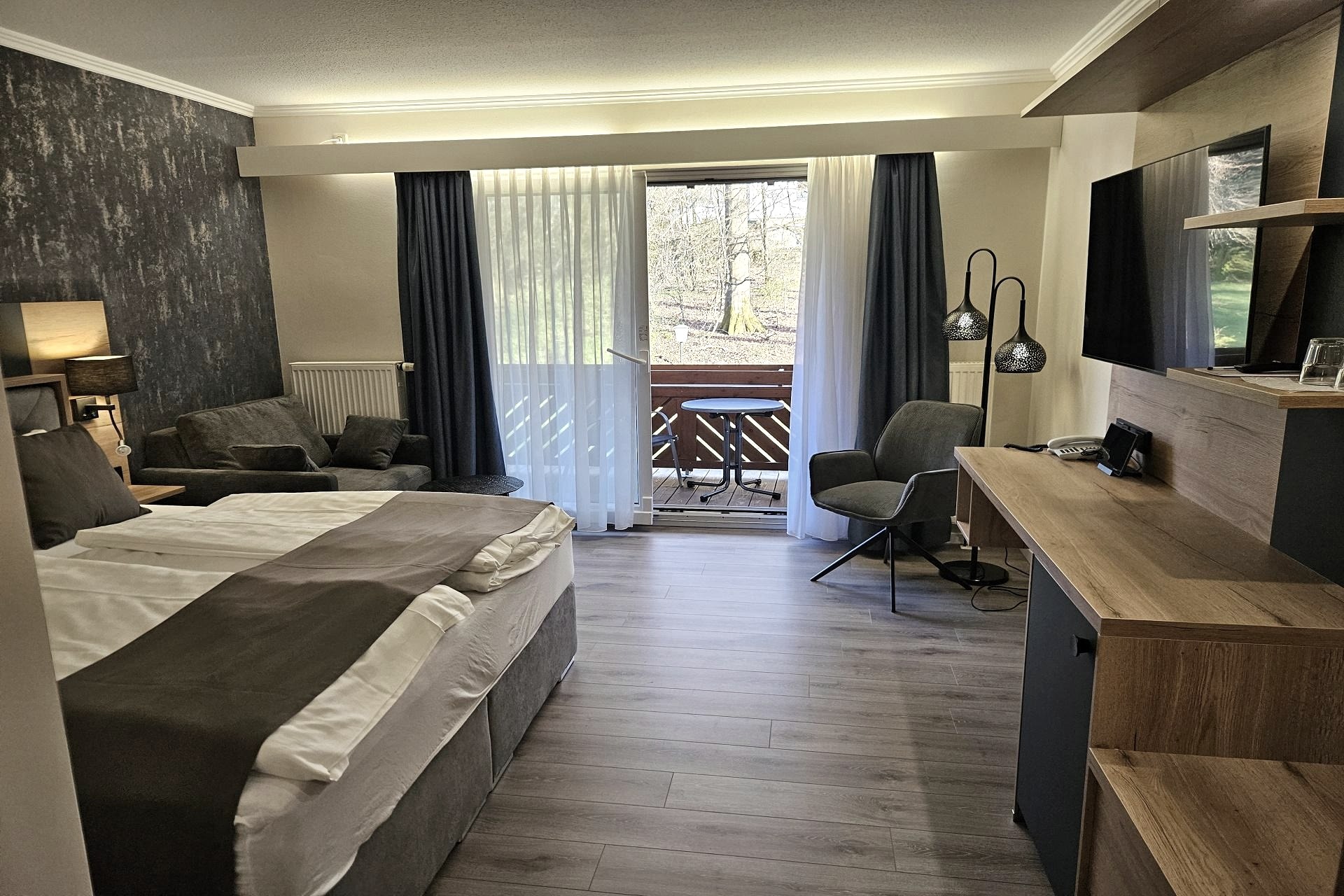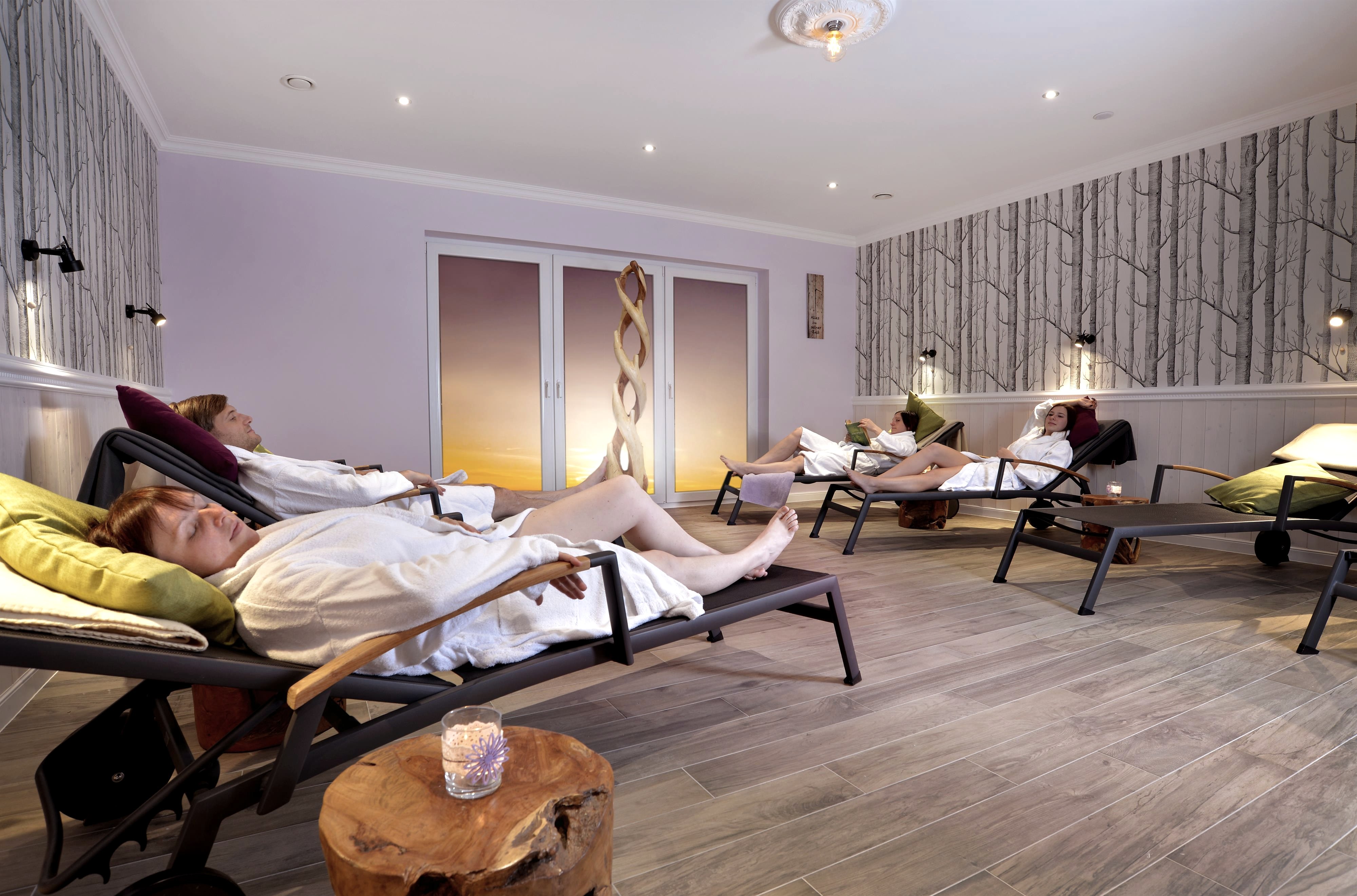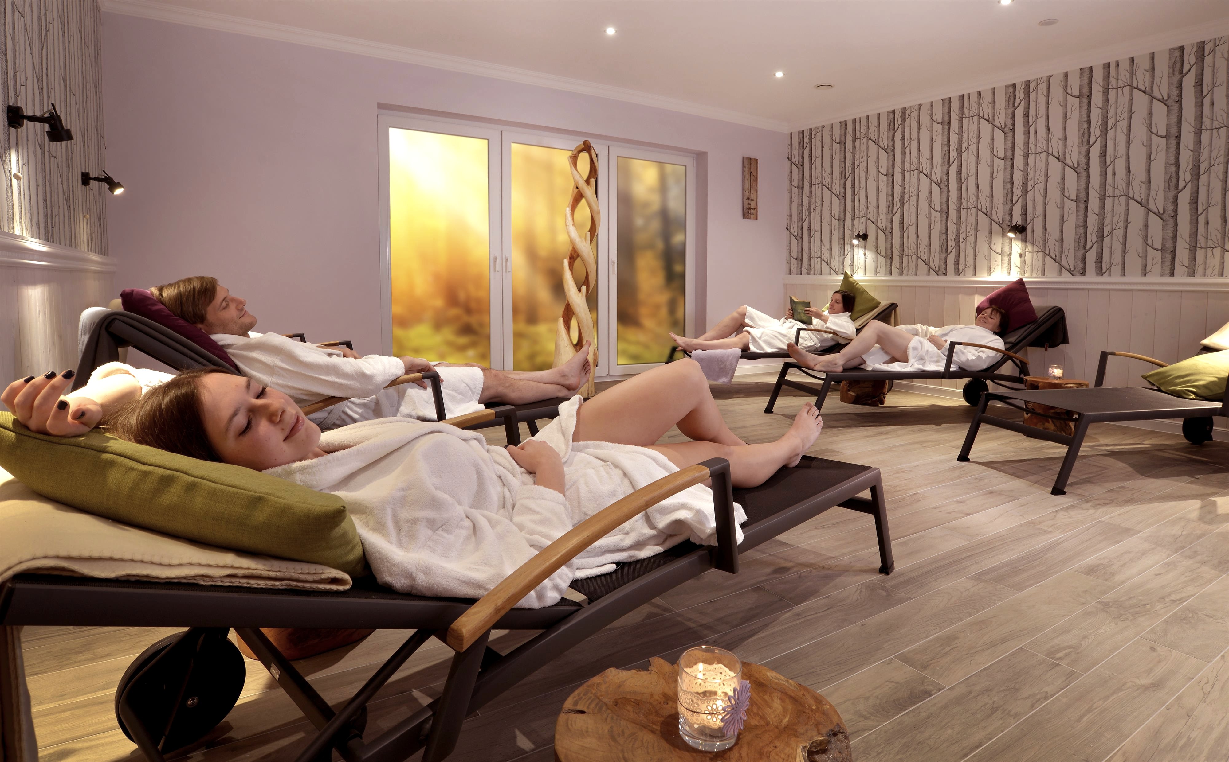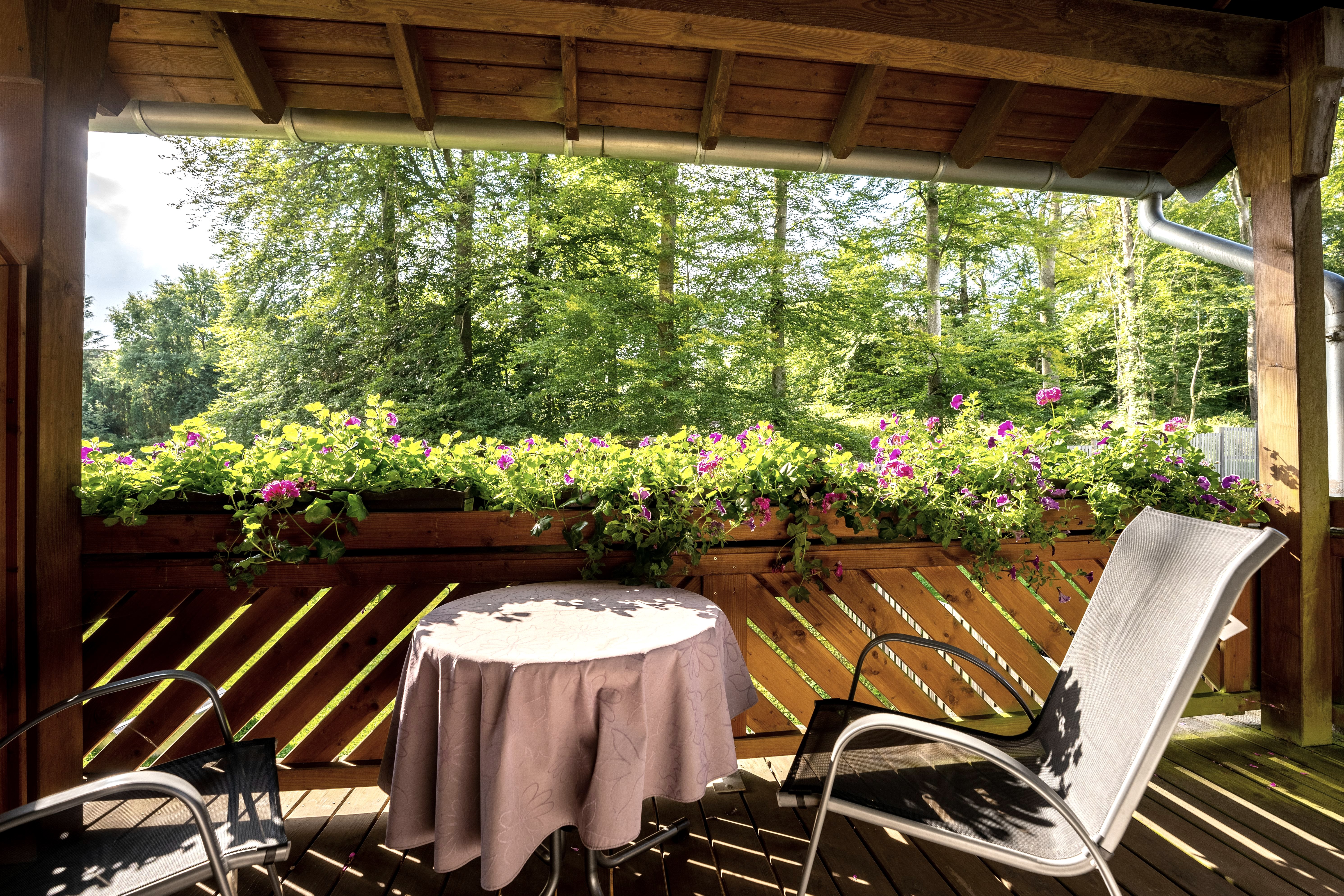 mit Duowanne für zwei und Massage. Einzigartig ist die ruhige Lage mit Blick in den Wald.
