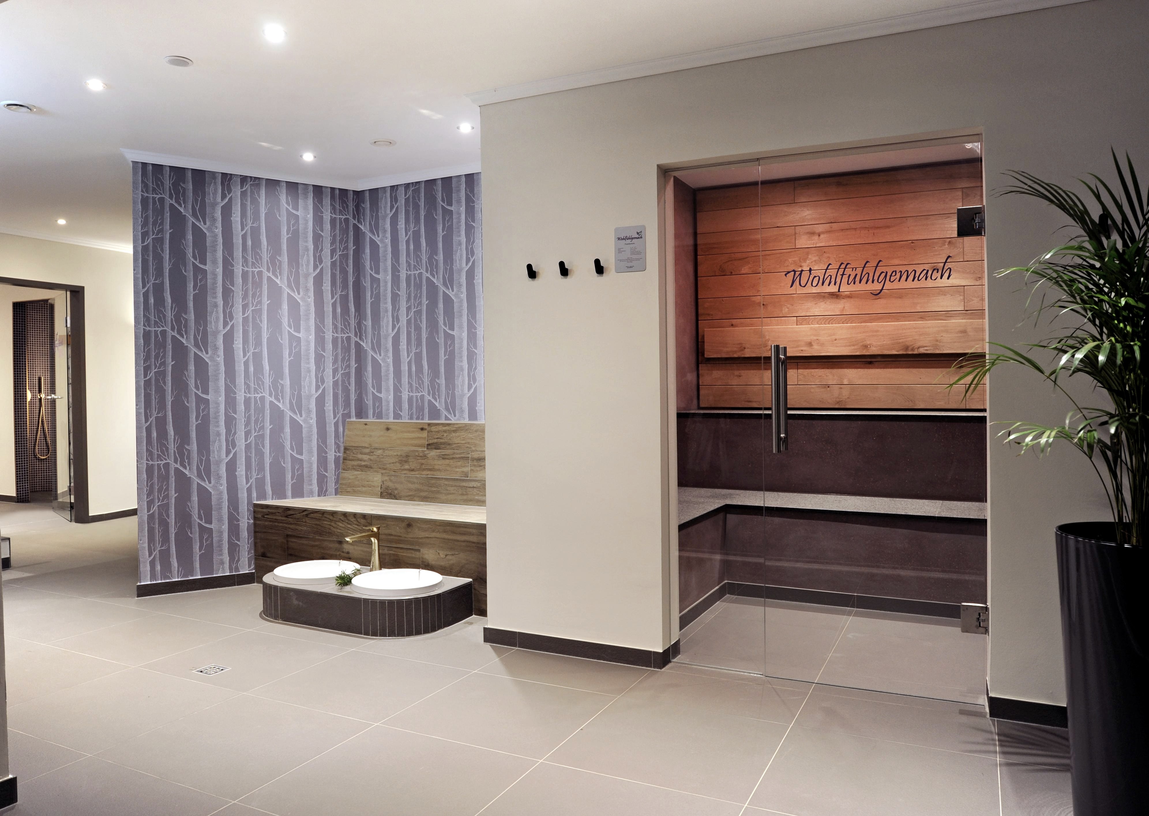 Saunen, Ruheraum, Erlebnisduschen und Umkleiden sowie seperatem Private-Spa-Bereich