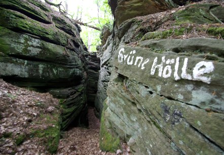 Die Grüne Hölle steht für viele beeindruckende Felsformationen in den Schluchtwäldern rings um Bollendorf. Allein auf der nach ihr benannten Wanderroute folgt ein bizarres Felsgebilde auf das andere, wechseln sich enge Schluchten und Spalten ab mit Felstürmen, von denen sich phantastische Aussichten bieten: Predigtstuhl, Muhmenlay, Lingelslay und Eulenhorst sind nur einige Namen, die für unvergessliche Eindrücke stehen…