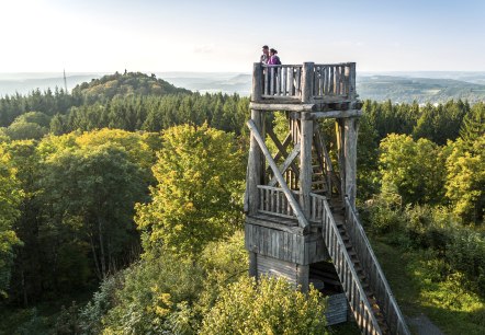 Im Gerolsteiner Land finden Sie einige tolle Aussichtspunkte. Von hier lässt sich die idyllische Herbstlandschaft in vollen Zügen genießen. Hoch hinaus!.